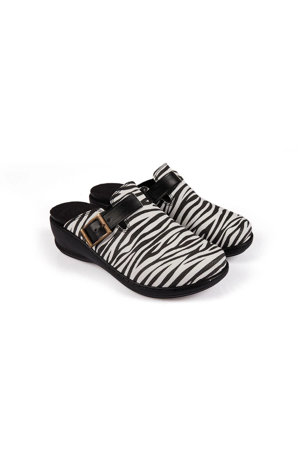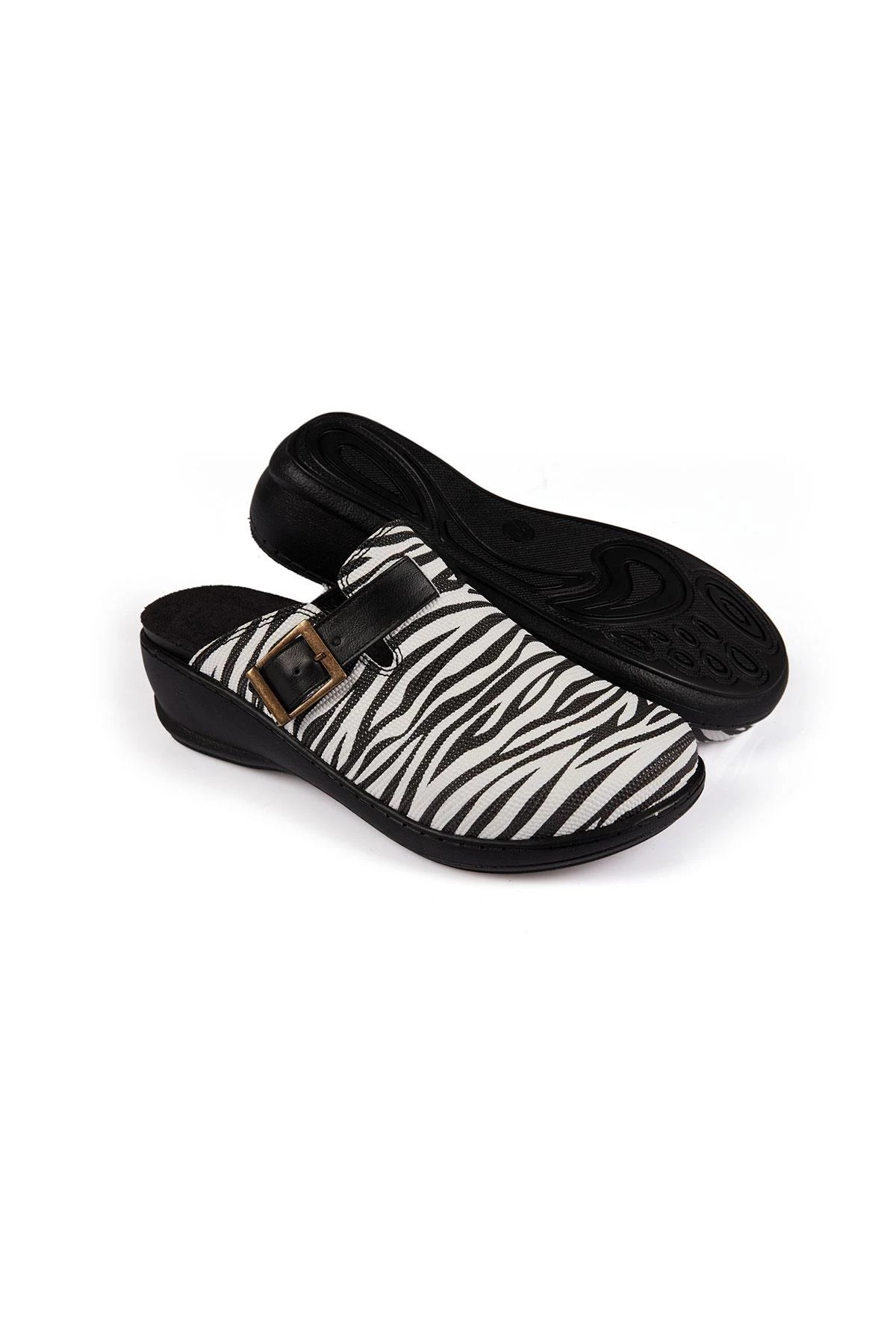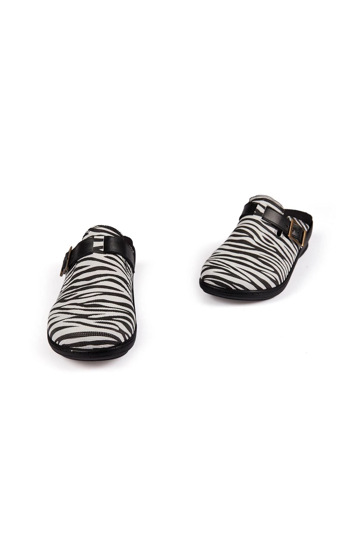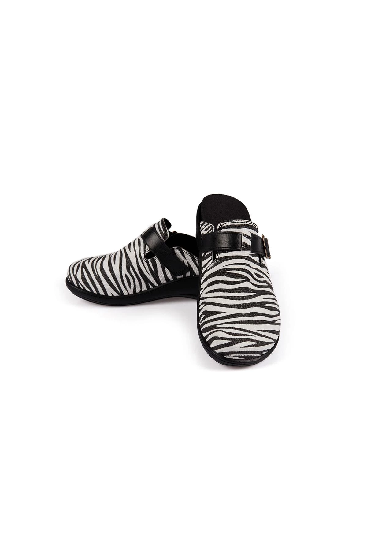 Kemerli Zebra Model Hakiki Deri Siyah Beyaz Unisex Terlik Exclusive Series Beyaz 36