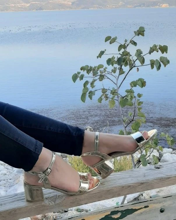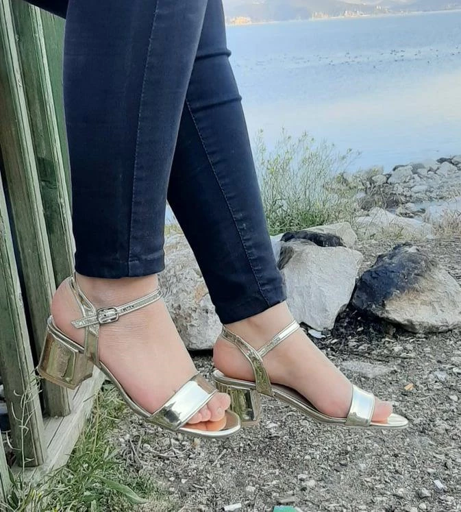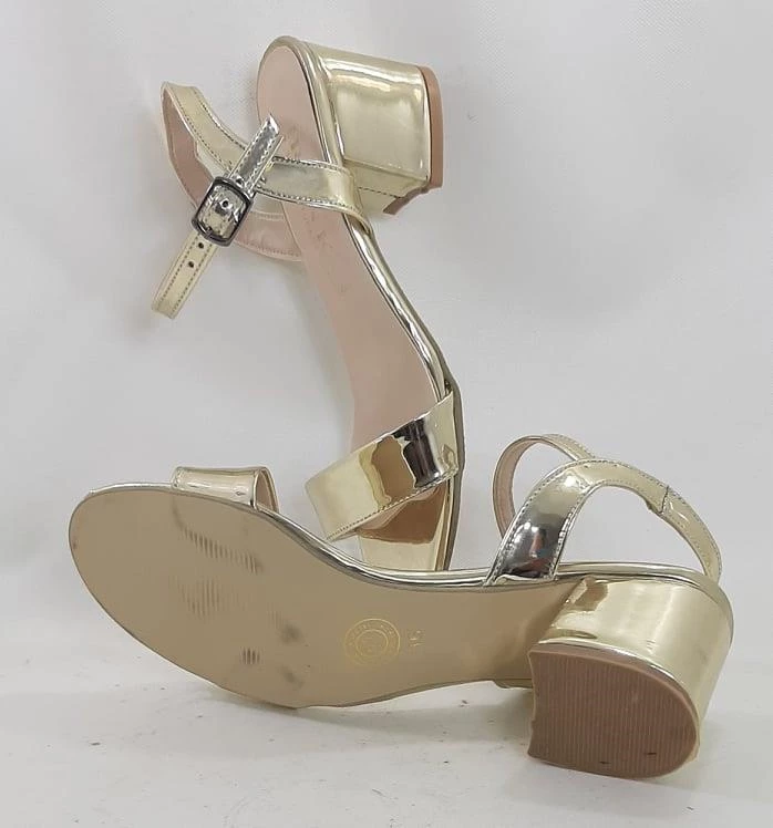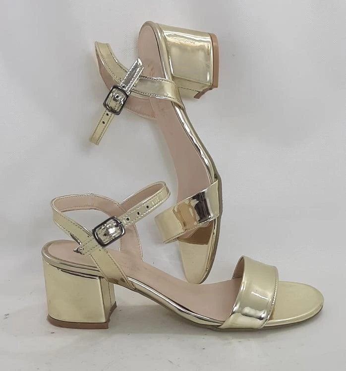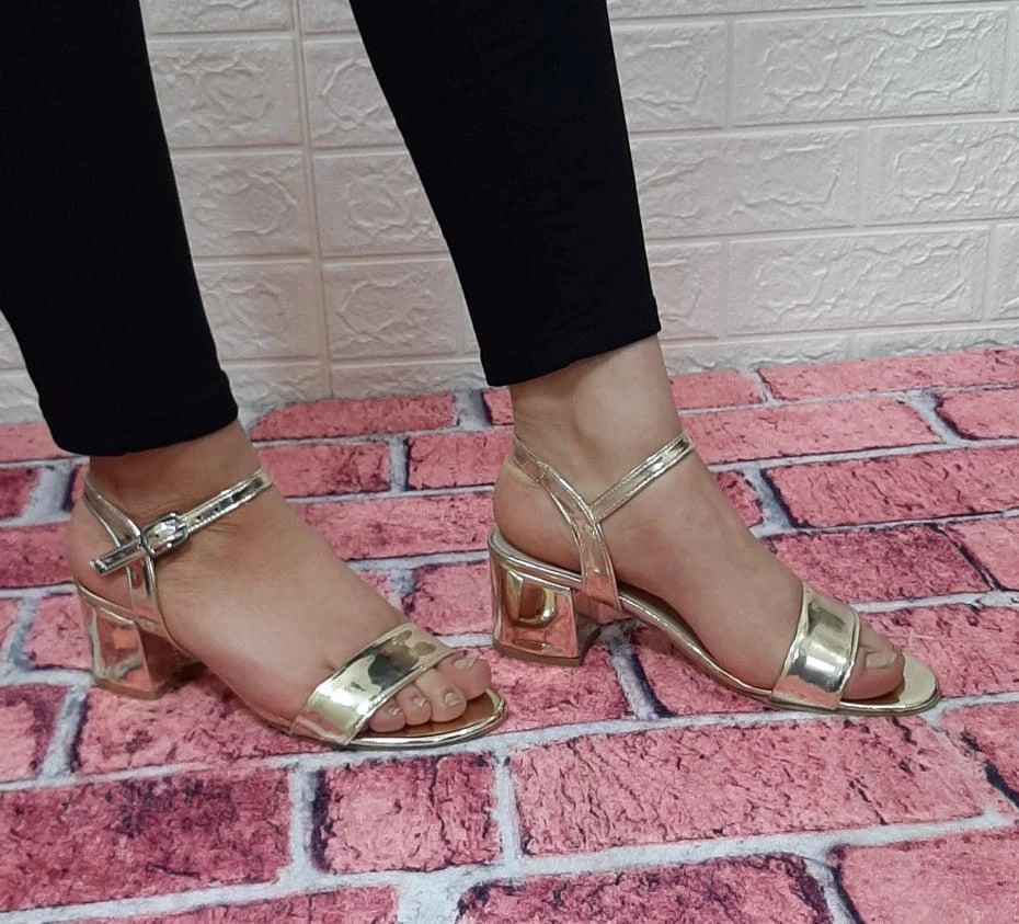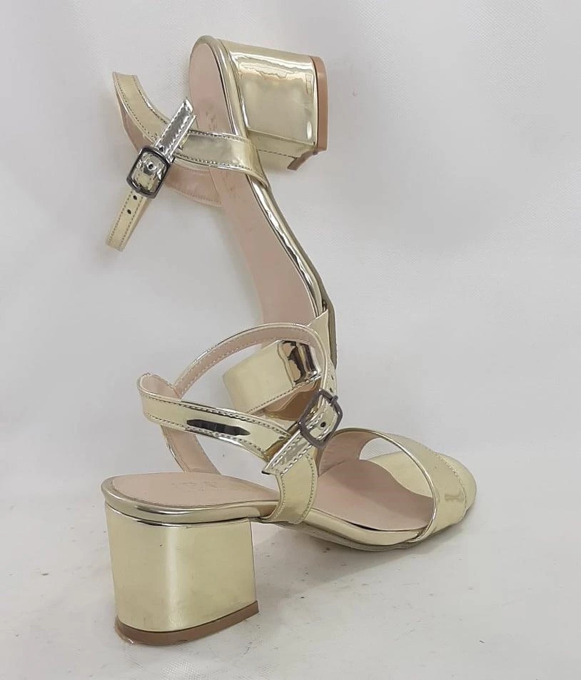 Dore Renk Aynalı 5cm Kare Topuk Tek Bant Topuklu Ayakkabı Dore 35