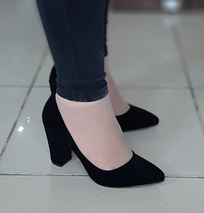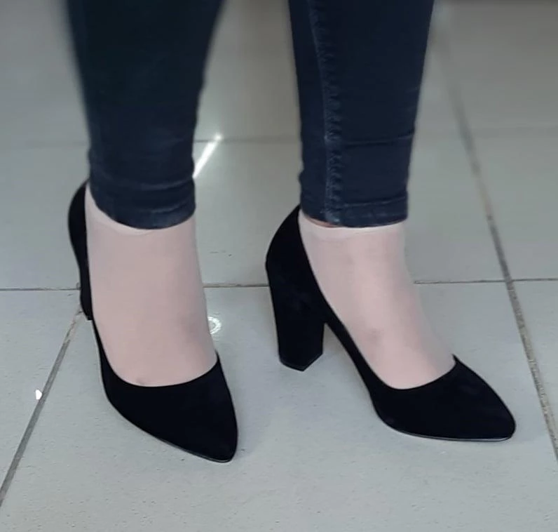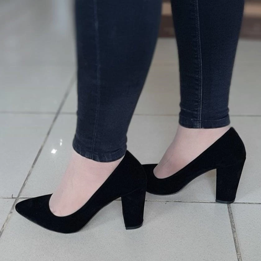 Siyah Renk Stiletto Siyah Süet Kare Topuk Şık Kullanışlı Rahat