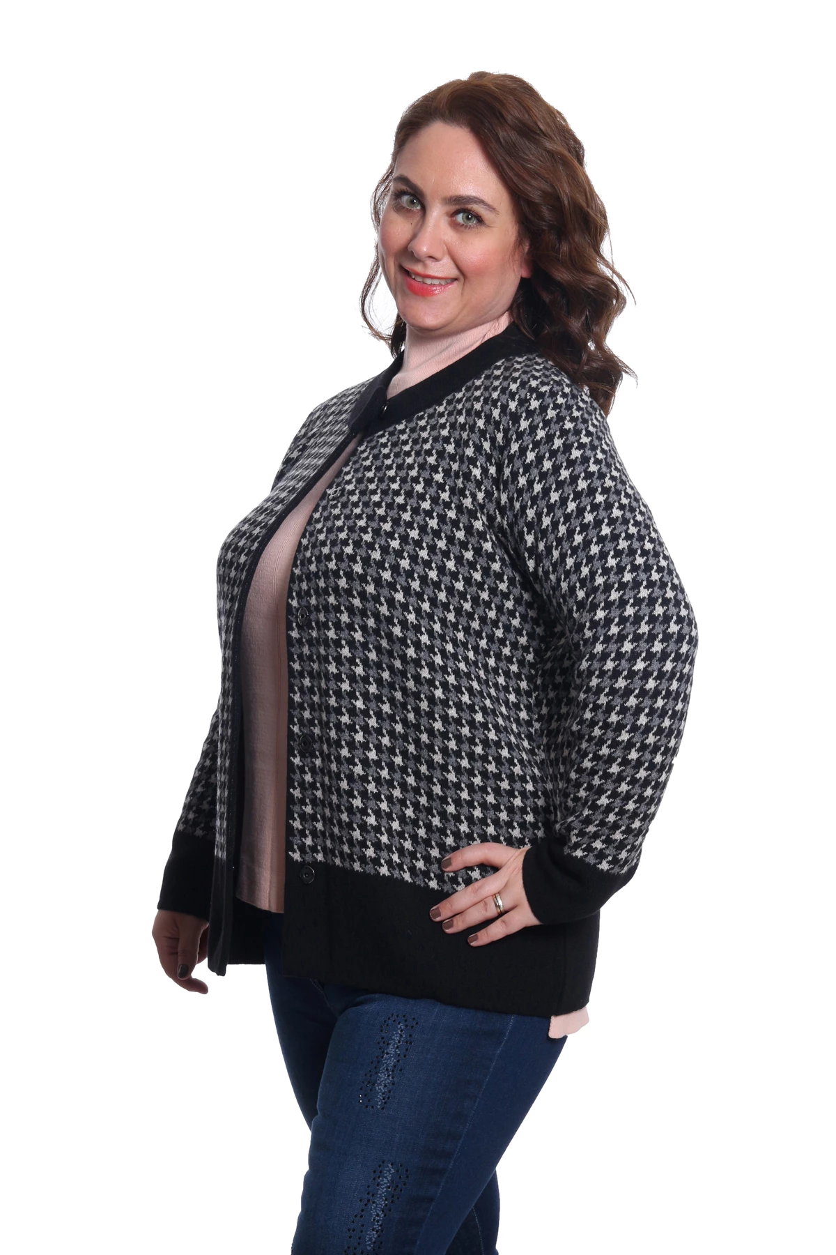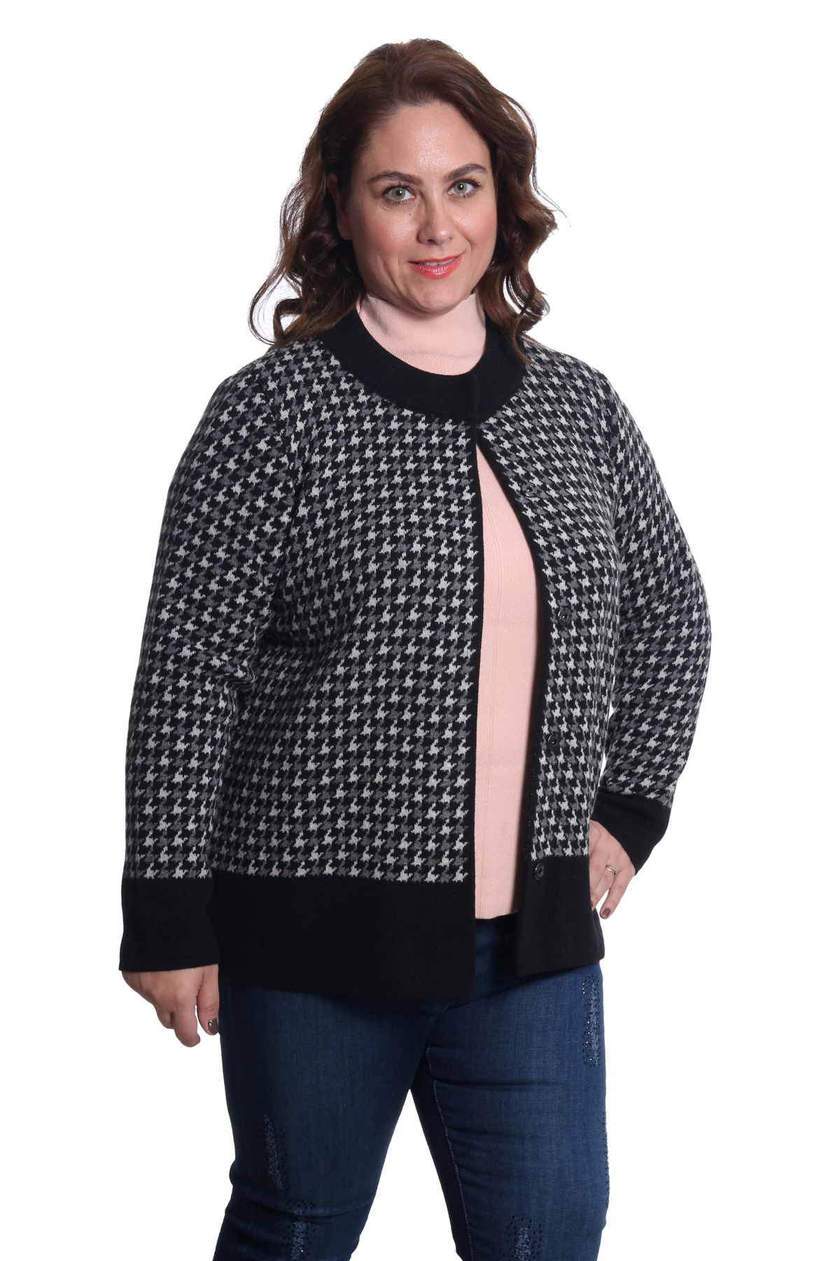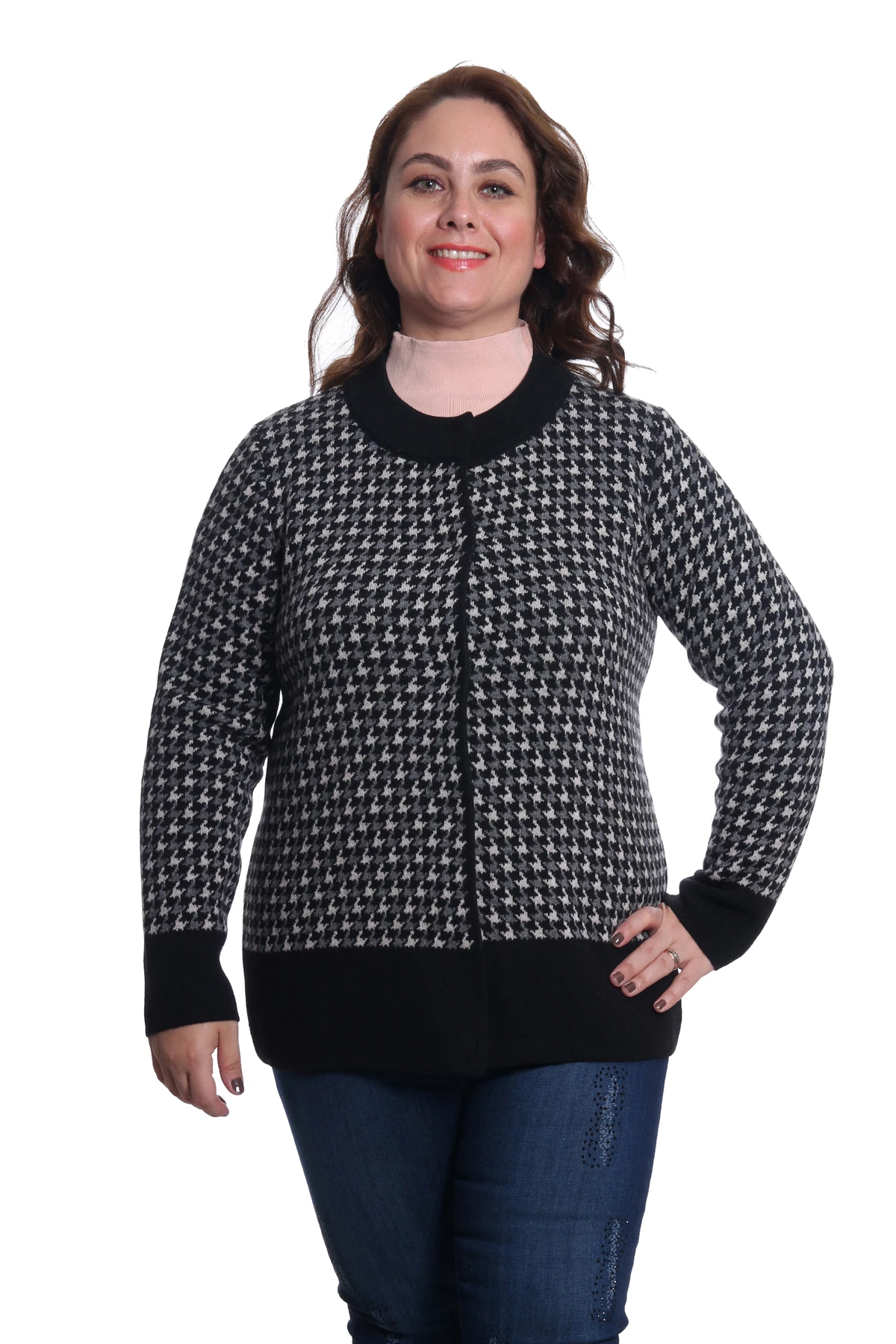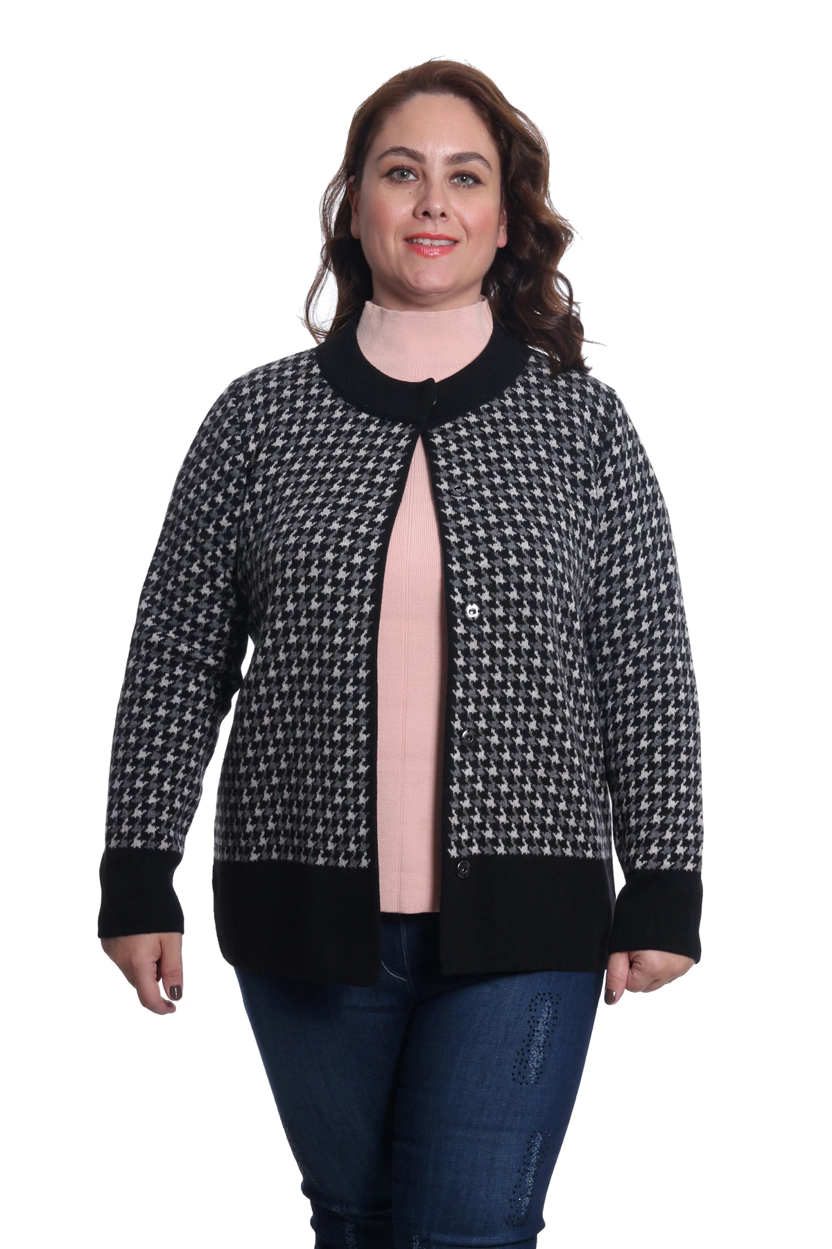 Needion - Desen Triko Kadın Büyük Beden Triko Hırka 9171 Siyah/Black 29W13009171 Siyah/Black L KADIN