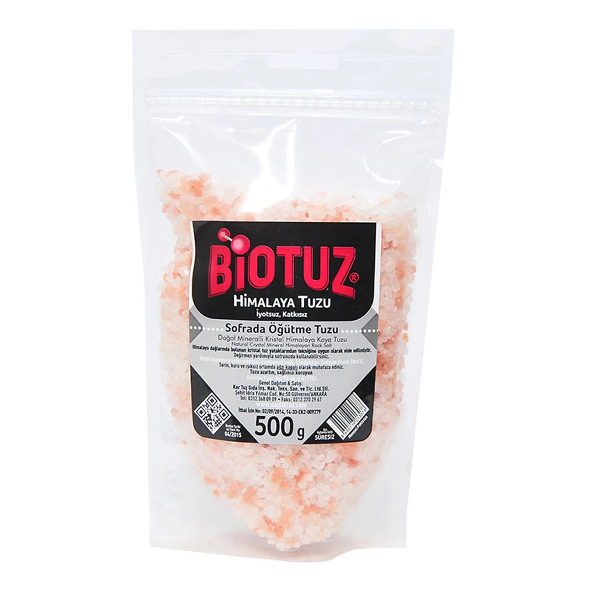 Biotuz Himalaya Kristal Çakıl Tuz 500Gr - Pembe İzin Belge: