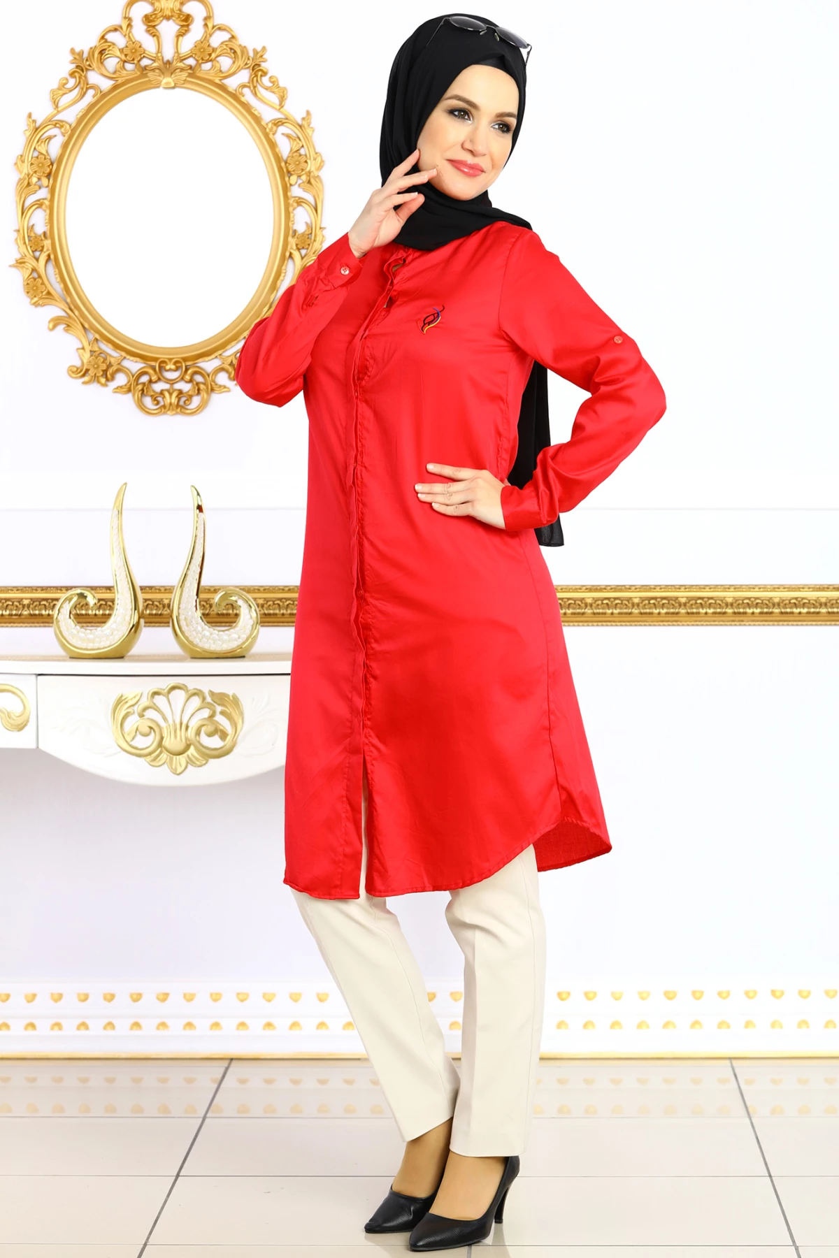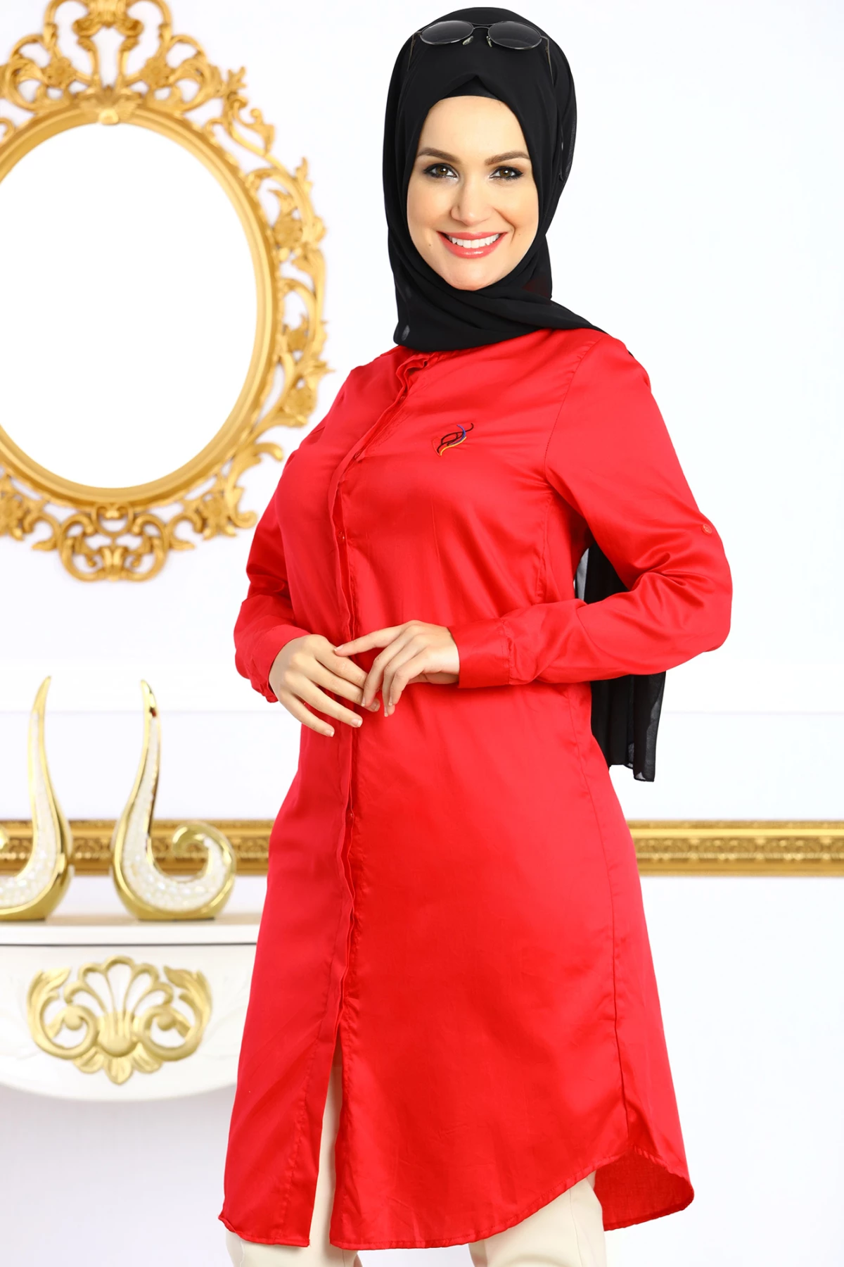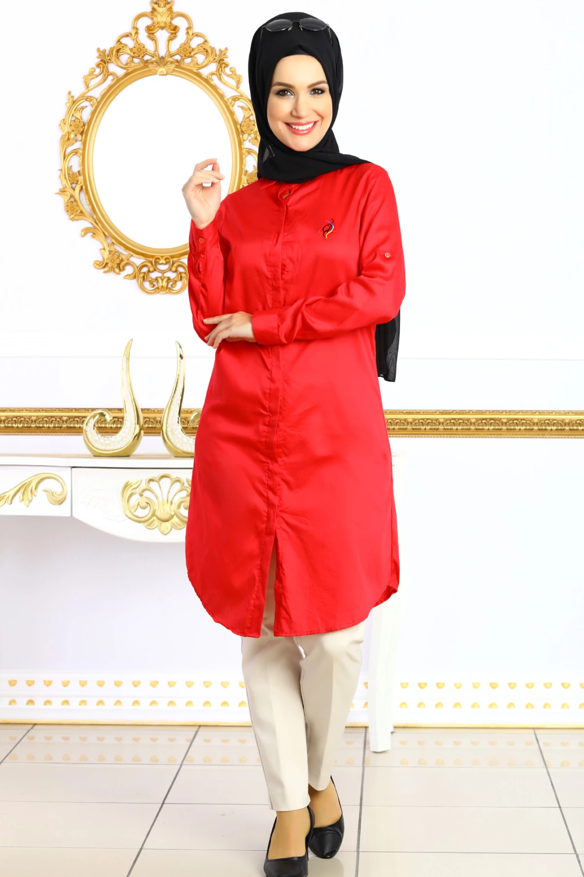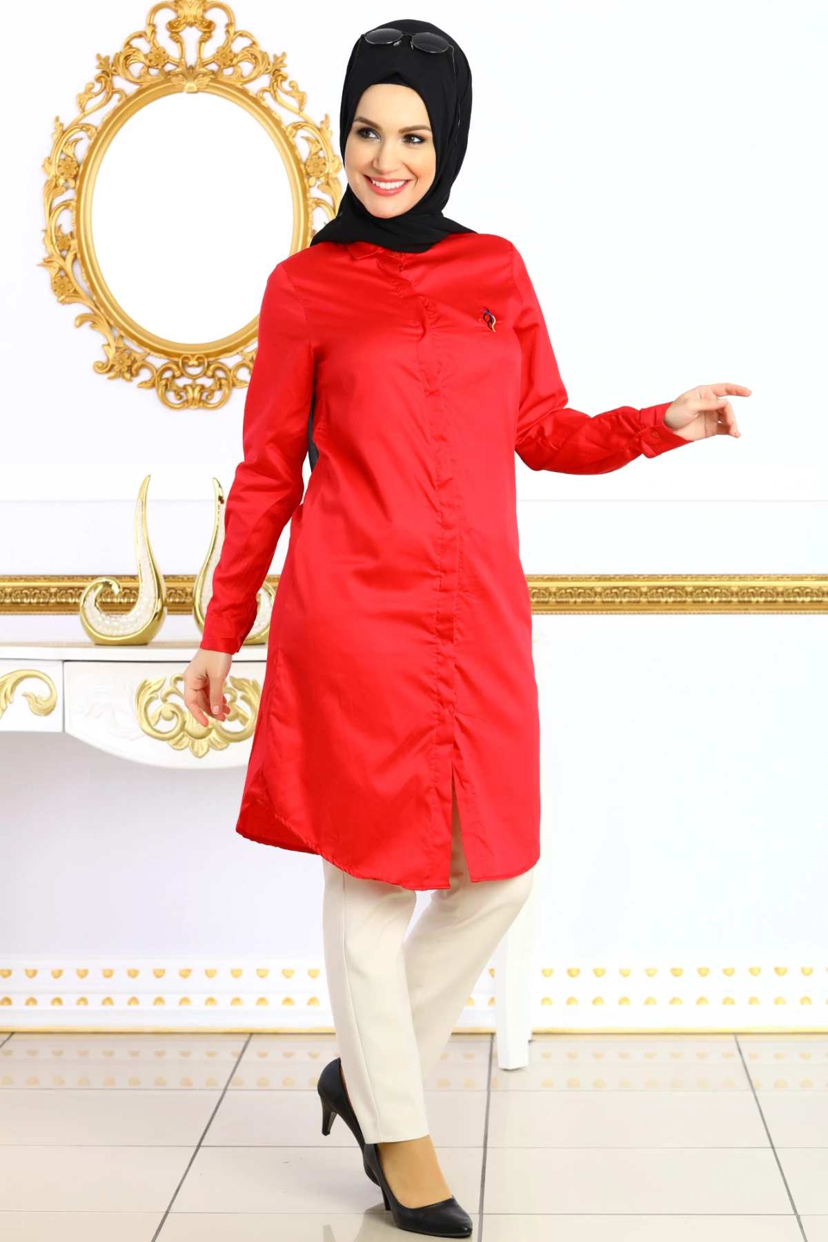 Needion - Düz Armalı Oval Kesim Tunik Gömlek Fuşya tr S