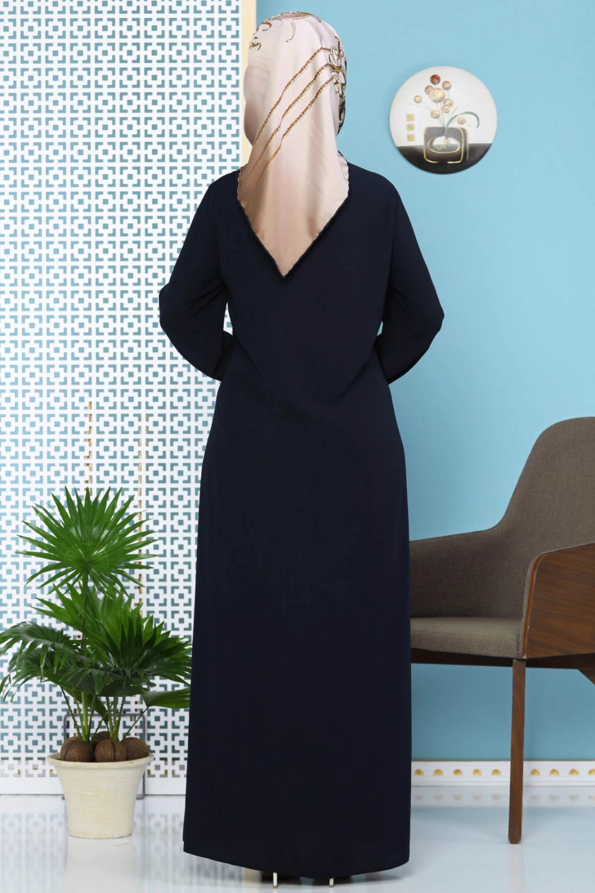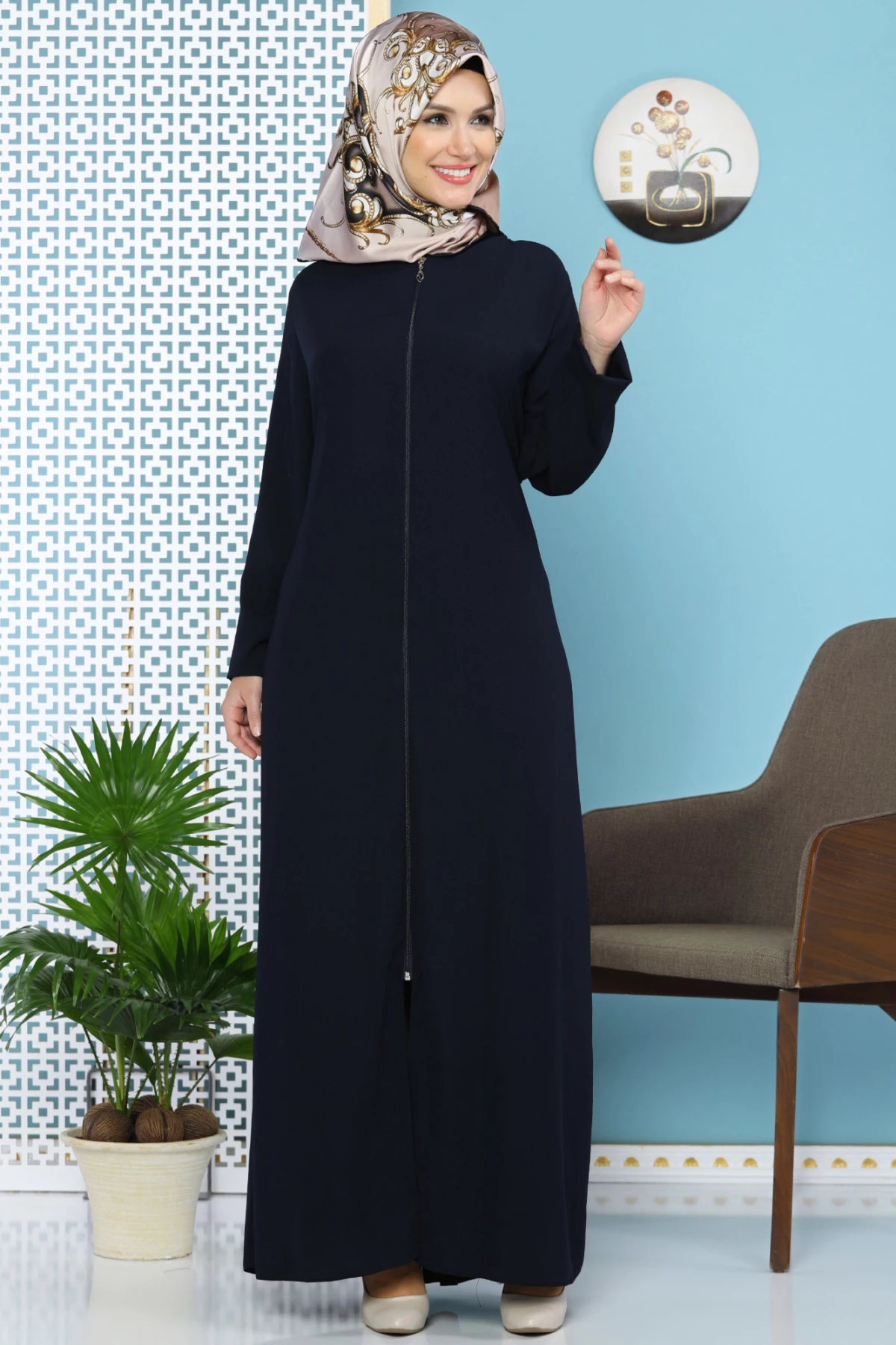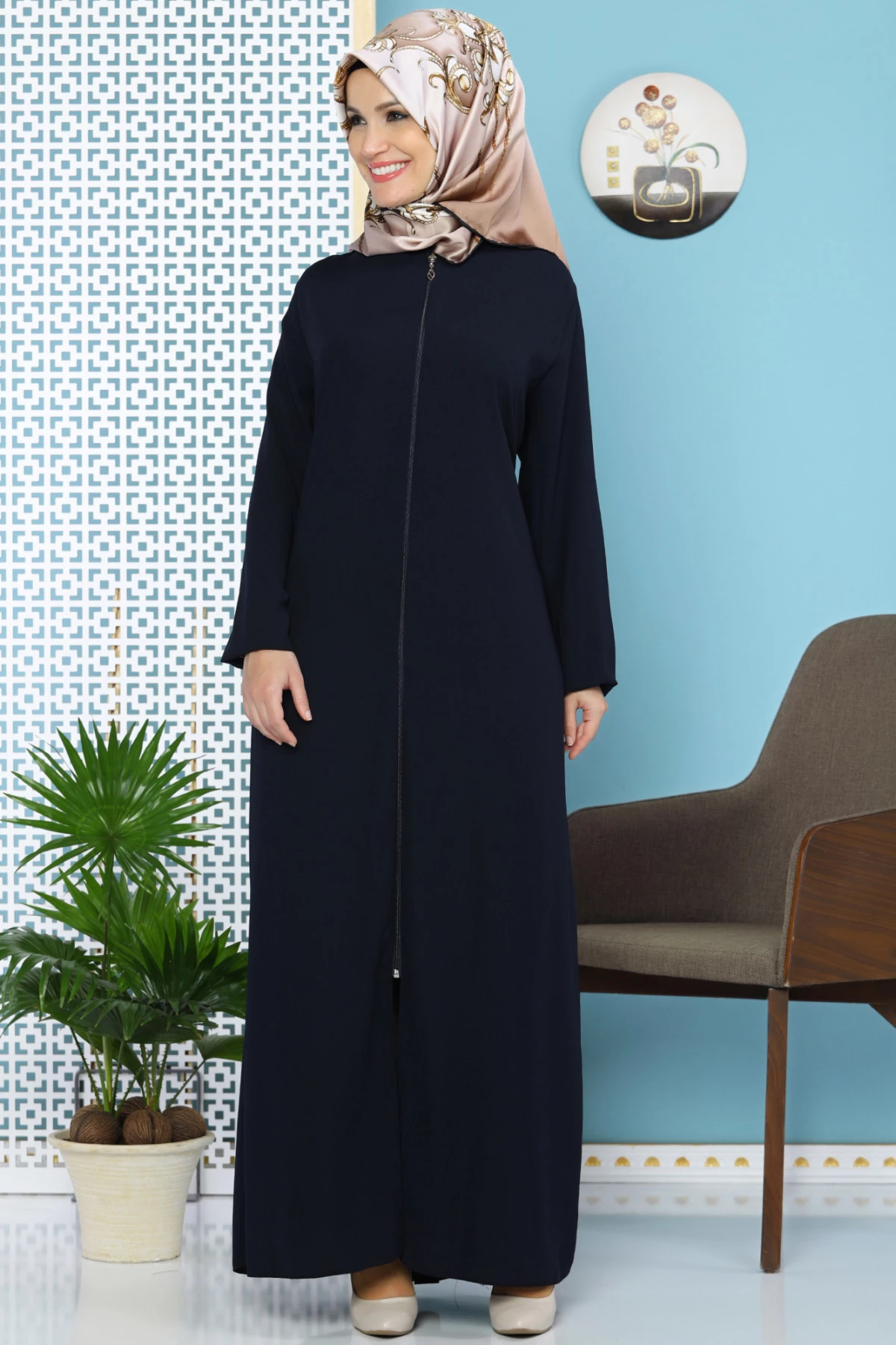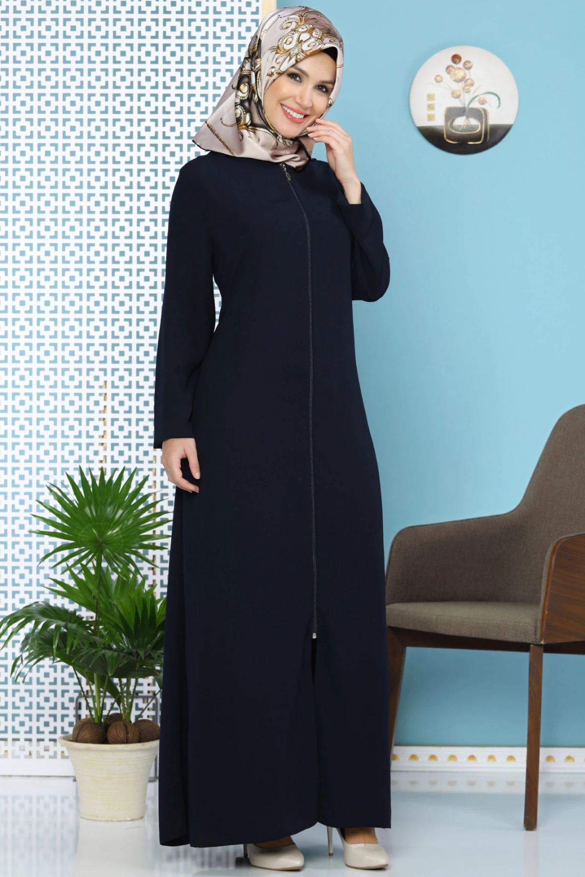Needion - Düz Klasik Fermuarlı Ferace Lacivert 58