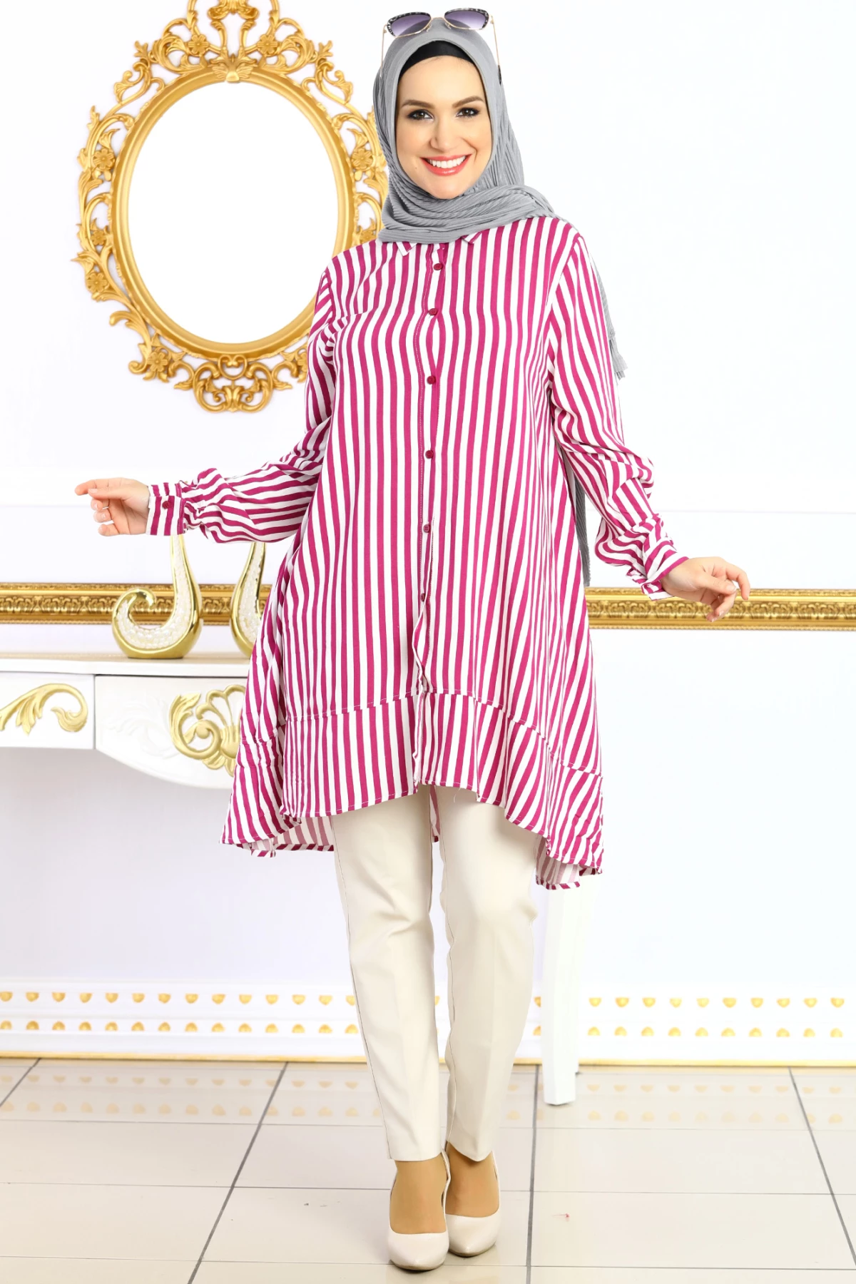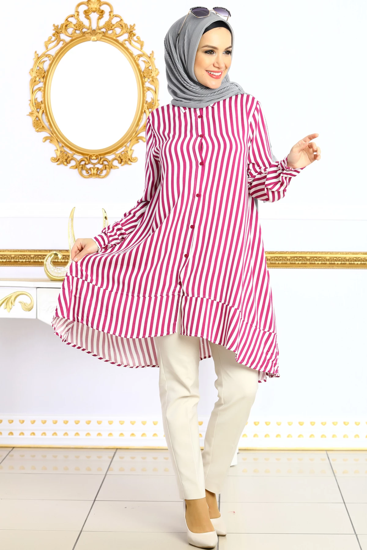 Rahat hafif ve esnek kumaş özelliği vardır.Gömleğin Alt tarafı Hilal Kesim Salaş olarak tasarlanmıştır.Tam kalıptır. Kendi bedeninizi sipariş vermeniz önerilir.