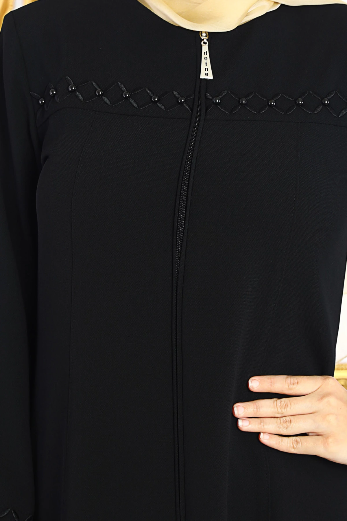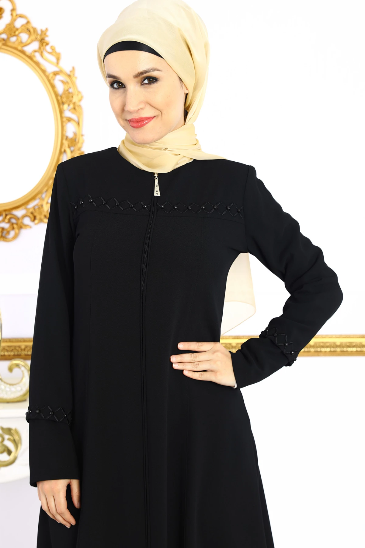 İnci İşlemeli Sekiz Katmanlı Ferace Siyah 48