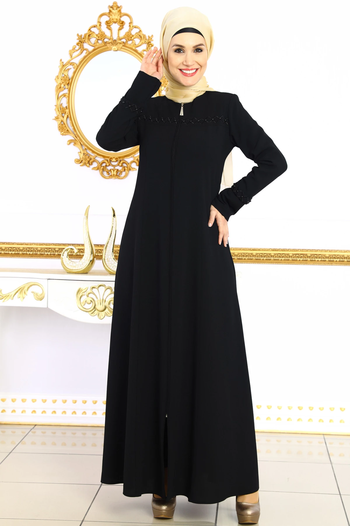 %100 Müşteri memnuniyeti ithal Bentley kumaşından üretilen gözenekli nefesalma özelliğine sahip kırışmaz önden fermuarlı inci işlemeli ön 4 parçadanoluşan arka 4 parçadan oluşan 8 katmanlı feracemiz siz değerli müşterilerimiziçin üretilmiştir.Tam kalıptır.