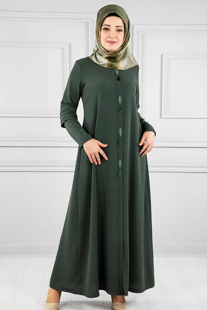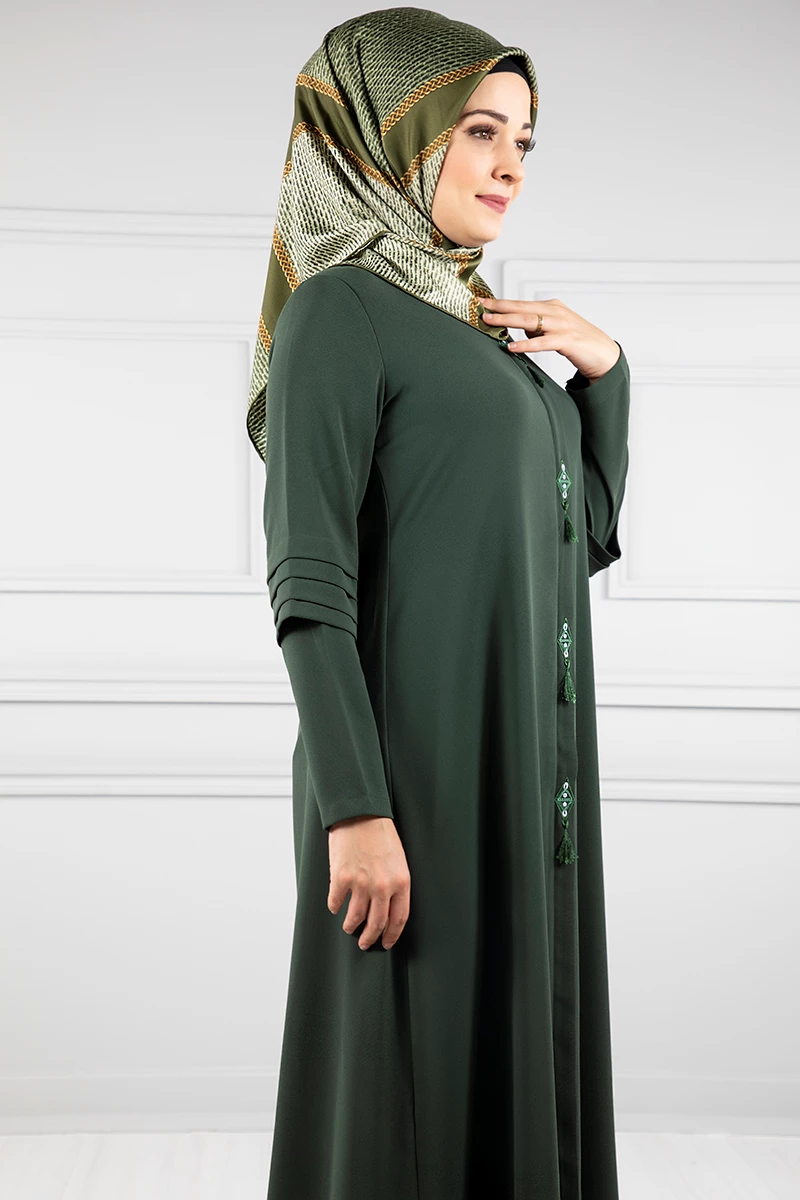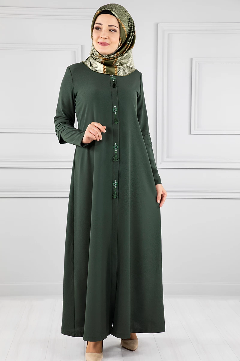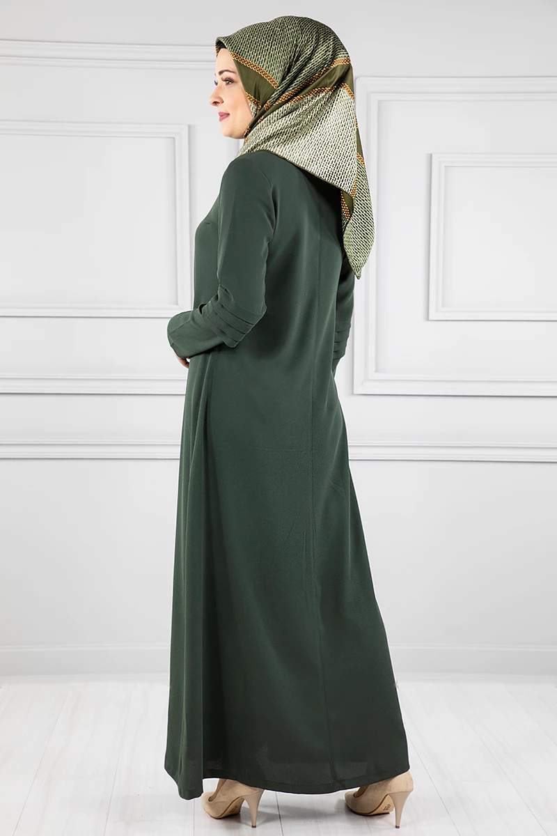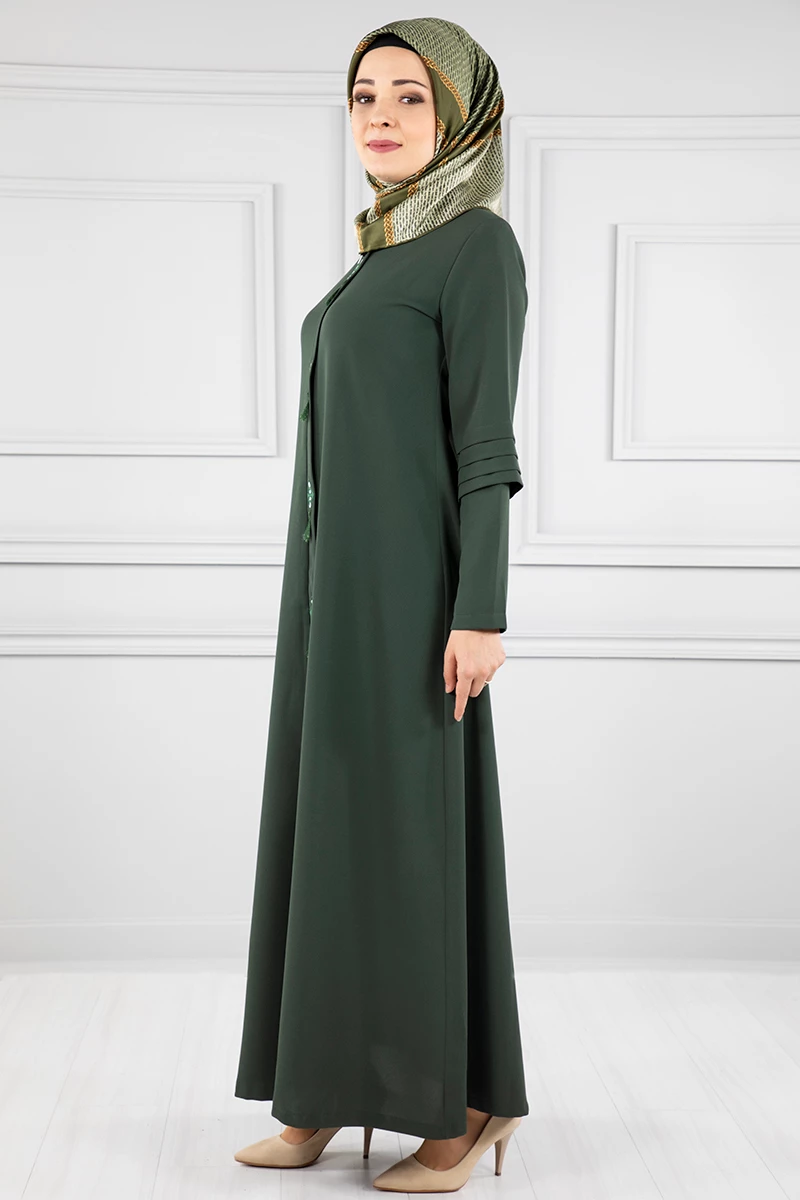 Kanavice İşlemeli Kolları Katmanlı Ferace Haki 38