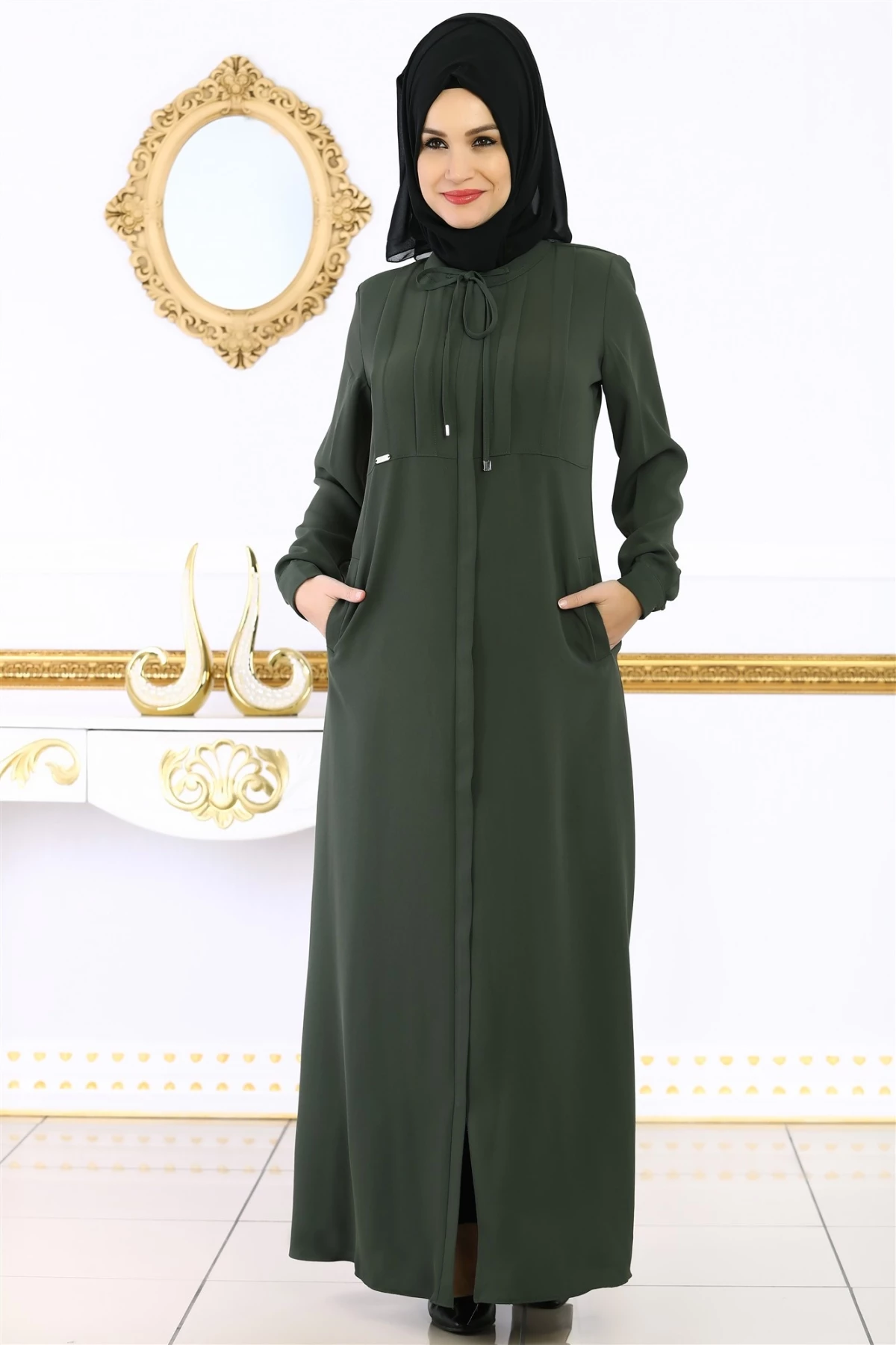 Ürünümüz gözenekli nefes alma özelliğine sahip kırışmaz boyundan bağcık katman piliseli önden çift cep fermuarlı feracemiz siz değerli müşterilerimiz için üretilmiştir.Tam kalıptır.