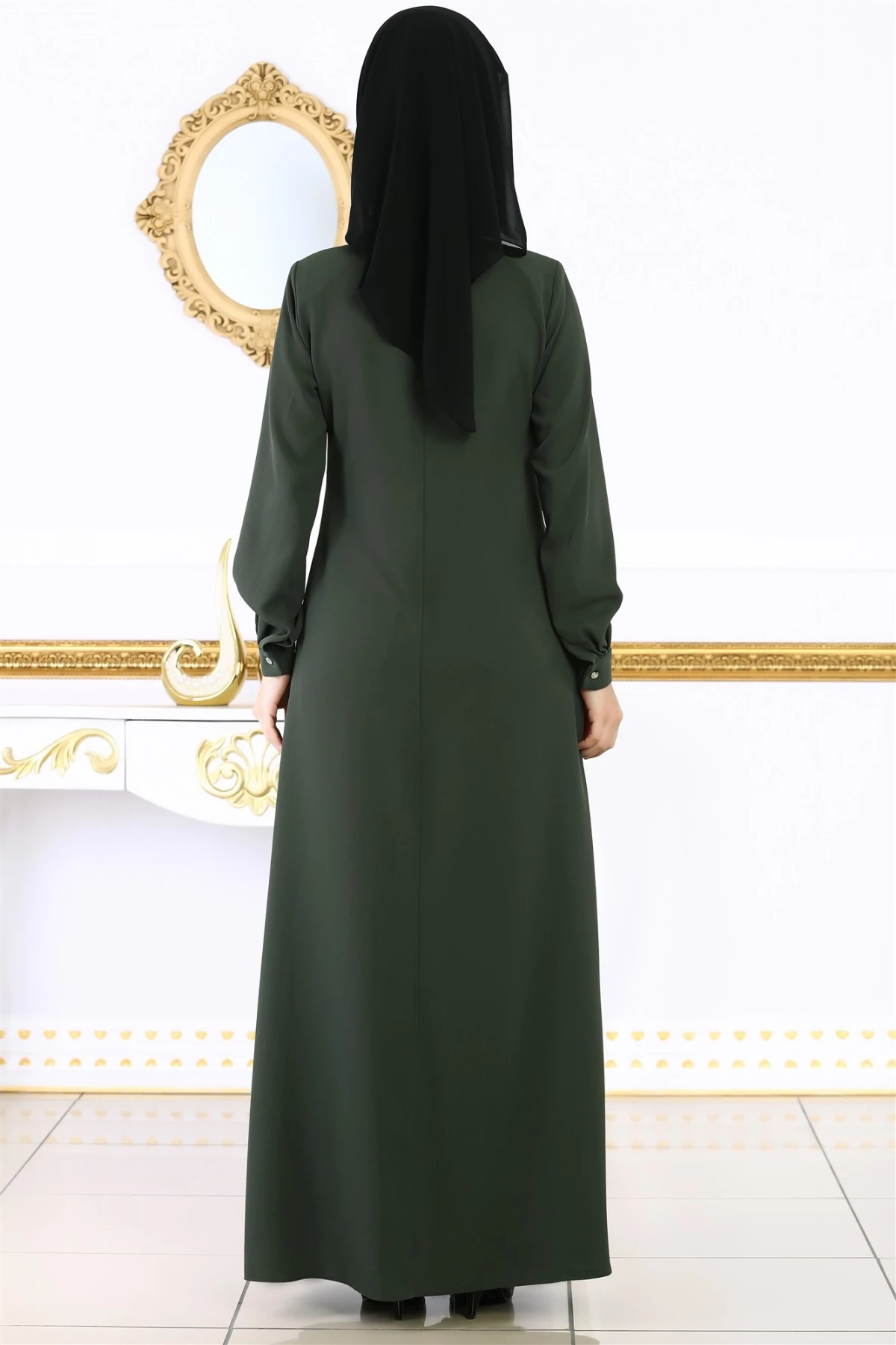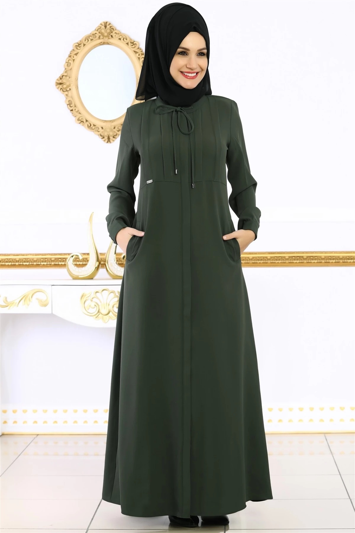 Piliseli Önden Çift Cepli Ferace Haki 40