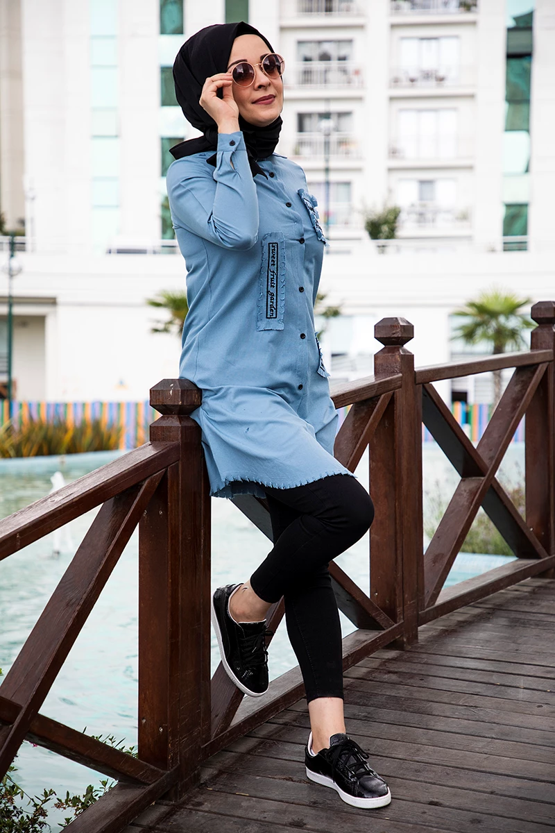 Saçak Kesim Tesettür Gömlek Tunik Lv30101 Mavi 46