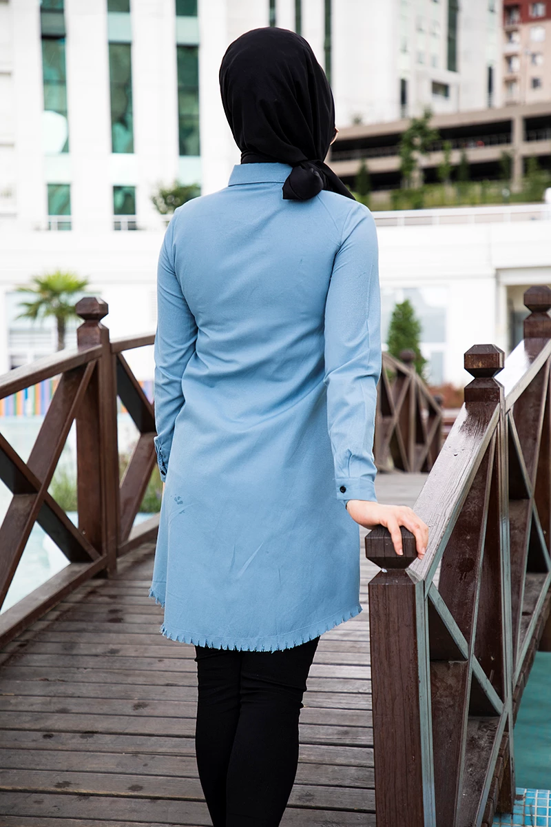 Needion - Saçak Kesim Tesettür Gömlek Tunik Lv30101 Mavi 46