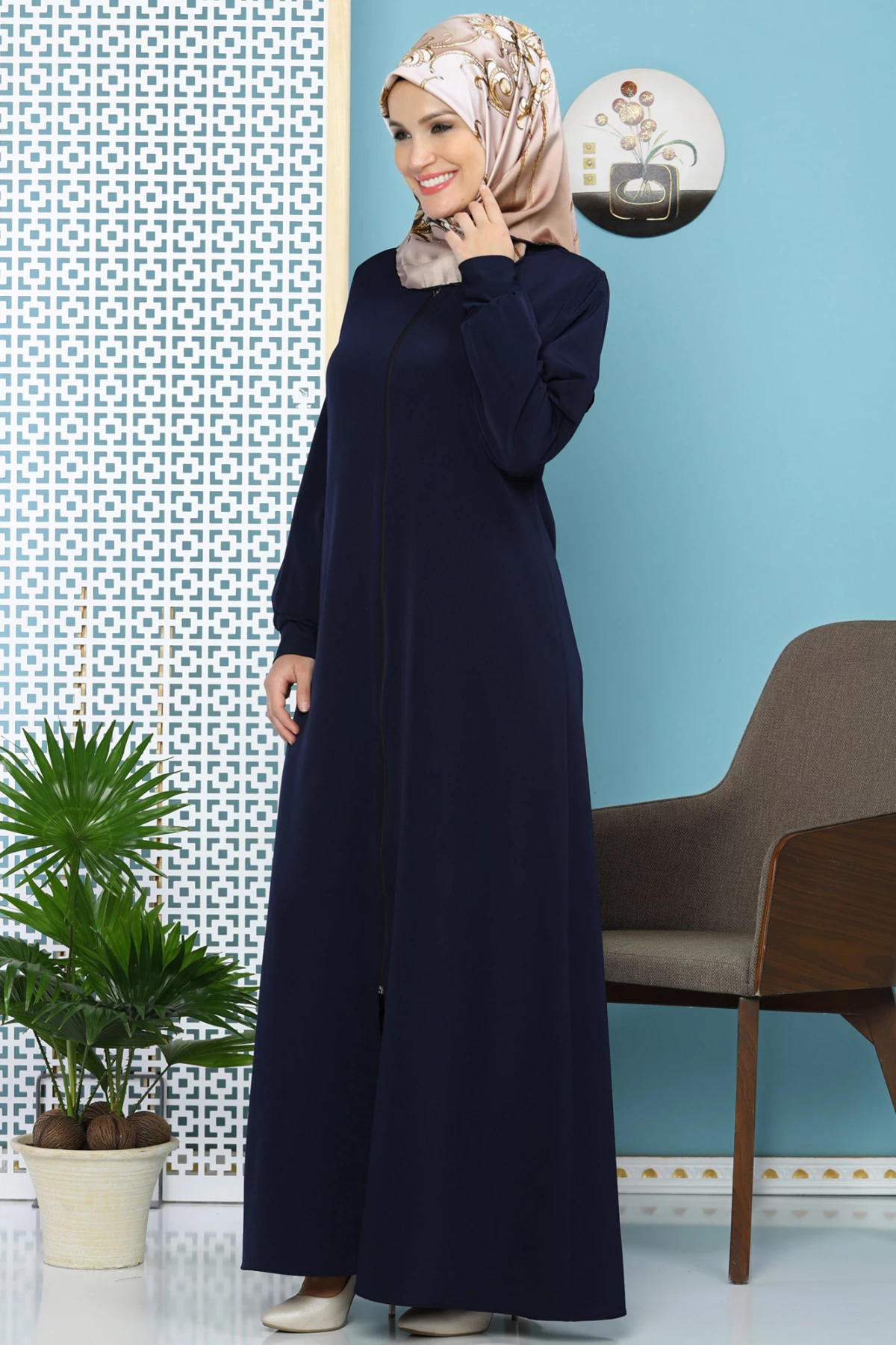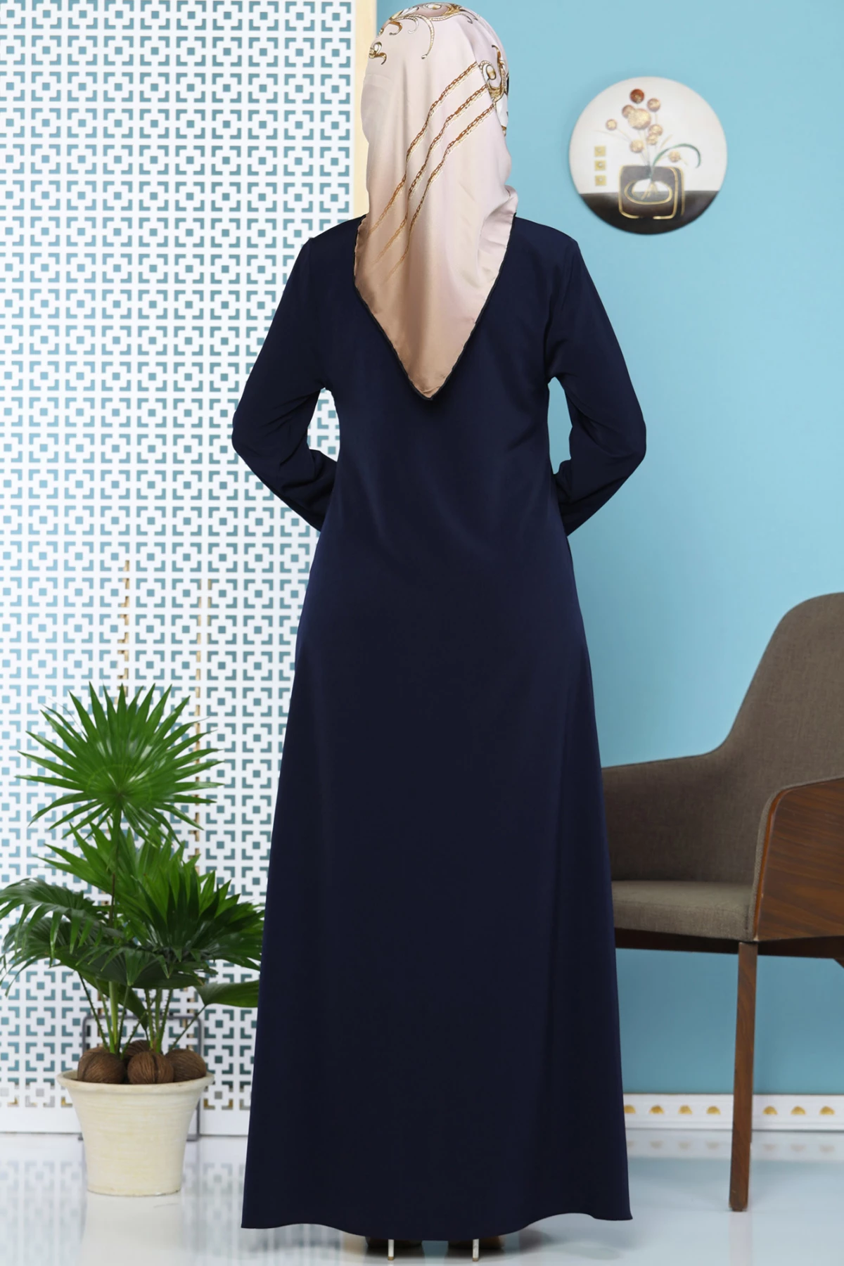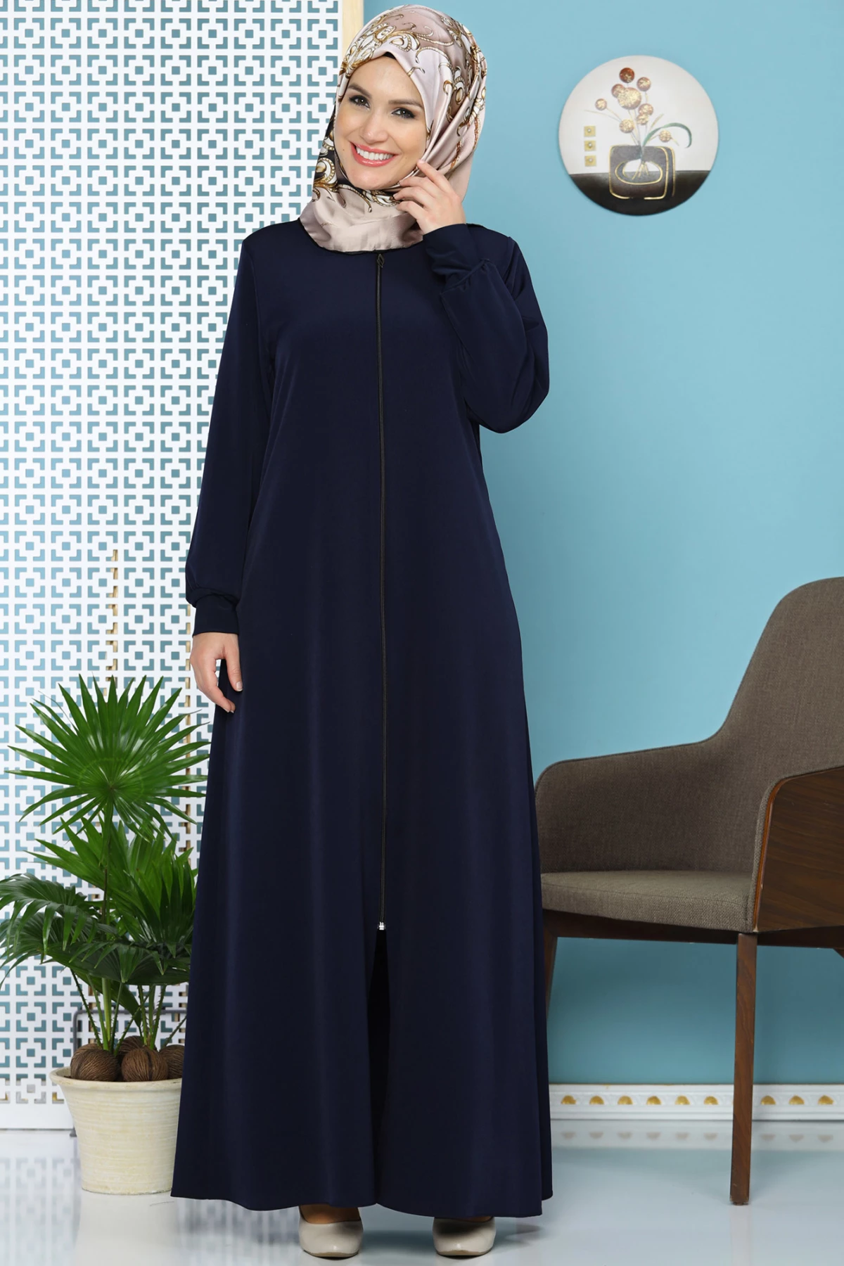 Needion - Sendy Kol Detaylı Fermuarlı Ferace Lacivert 38