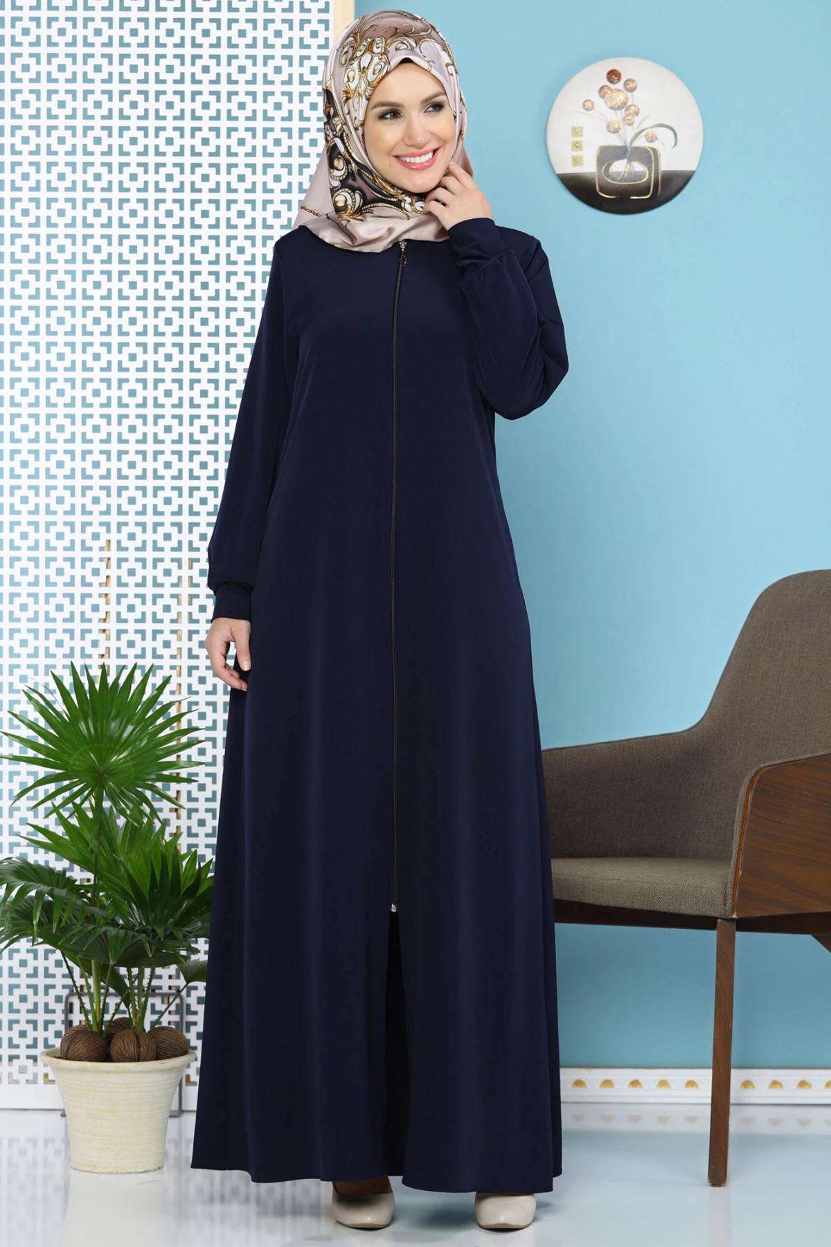 Sendy Kol Detaylı Fermuarlı Ferace Lacivert 38