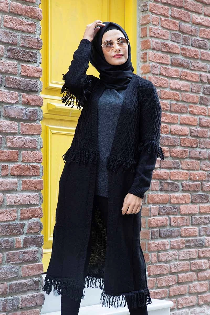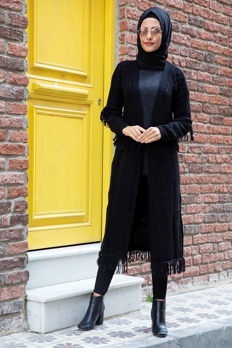 Needion - Triko Uzun Püskül Detaylı Hırka SA0305SH STD(36-42)