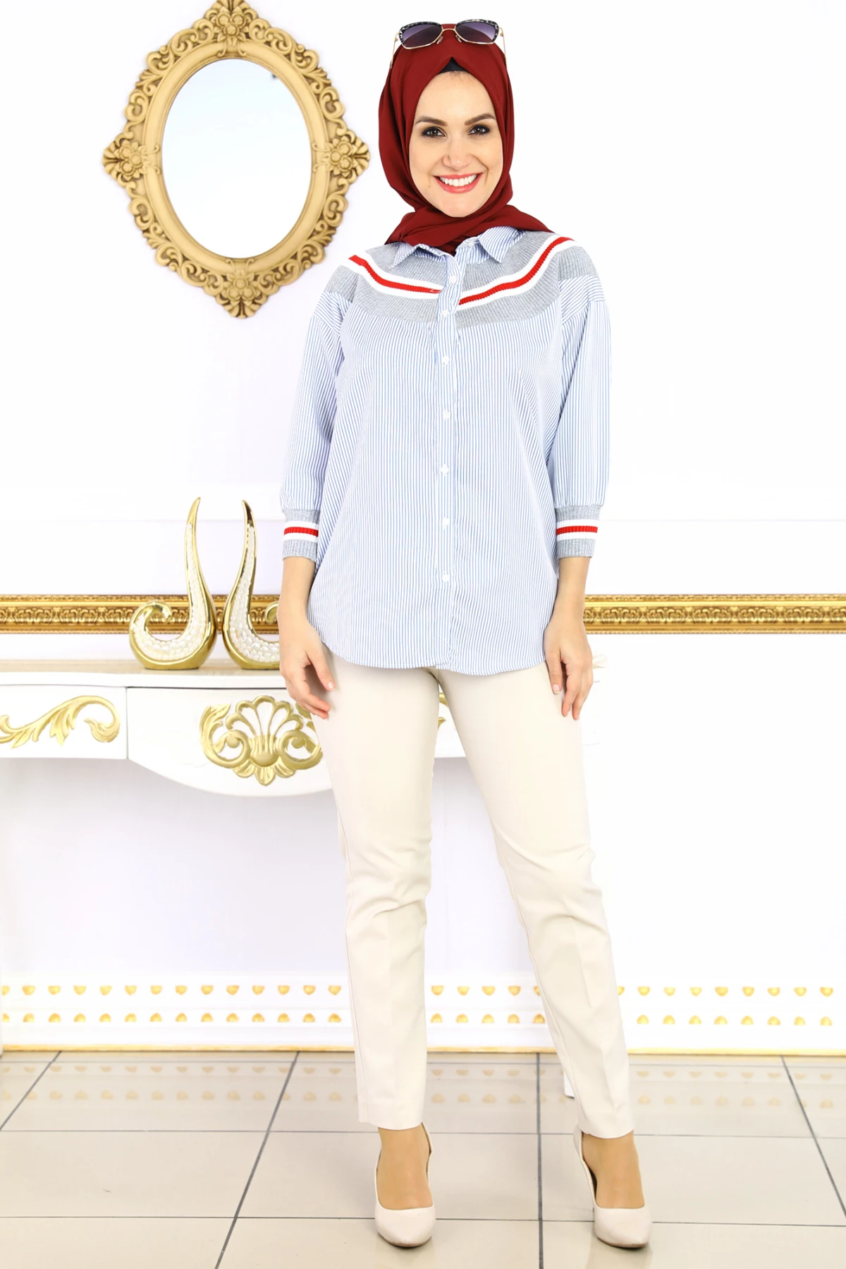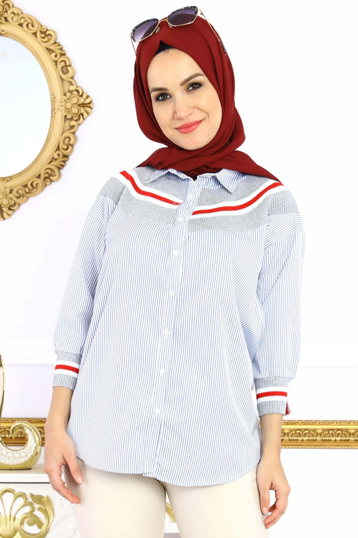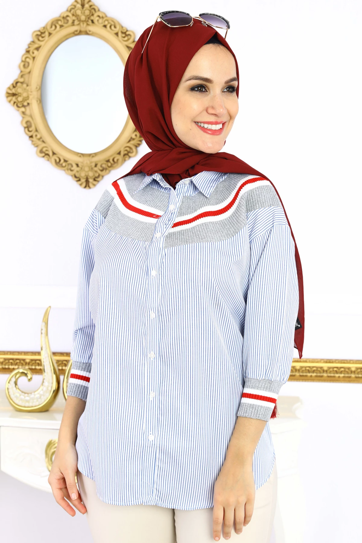 Needion - Yarım Kol Triko Detaylı Gömlek S
