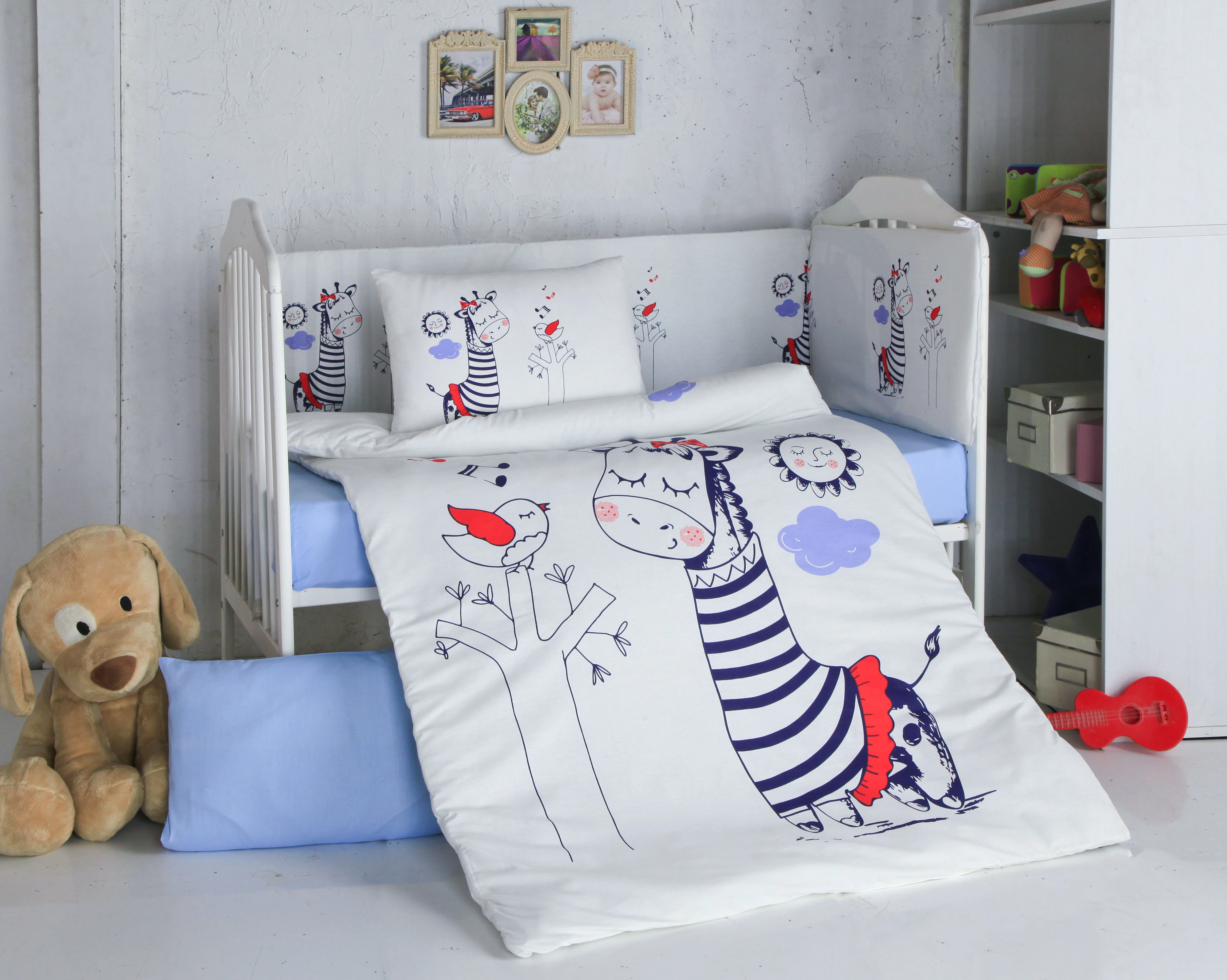 Needion - Komfort Home Bebek Uyku Seti 8 Parça Ranforce %100 Pamuk /Melodi Renkli