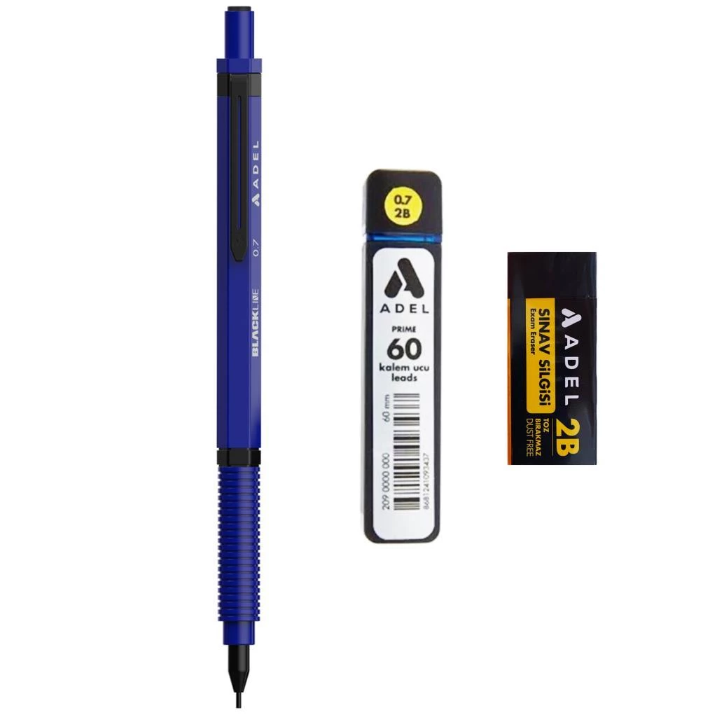 Adel Blacklıne Metal Gövdeli Versatil Kalem Mavi 0.7 + Adel 0,7 Uç 60'lı + Silgi