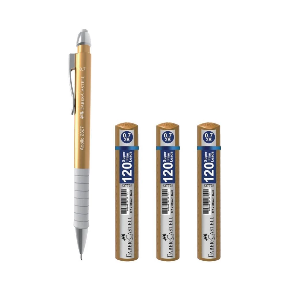 Needion - Faber-Castell Apollo Versatil Kalem 0.7 Metalik Gold + 3 Adet Grip Min 120'li 0.7 Metalik Gold