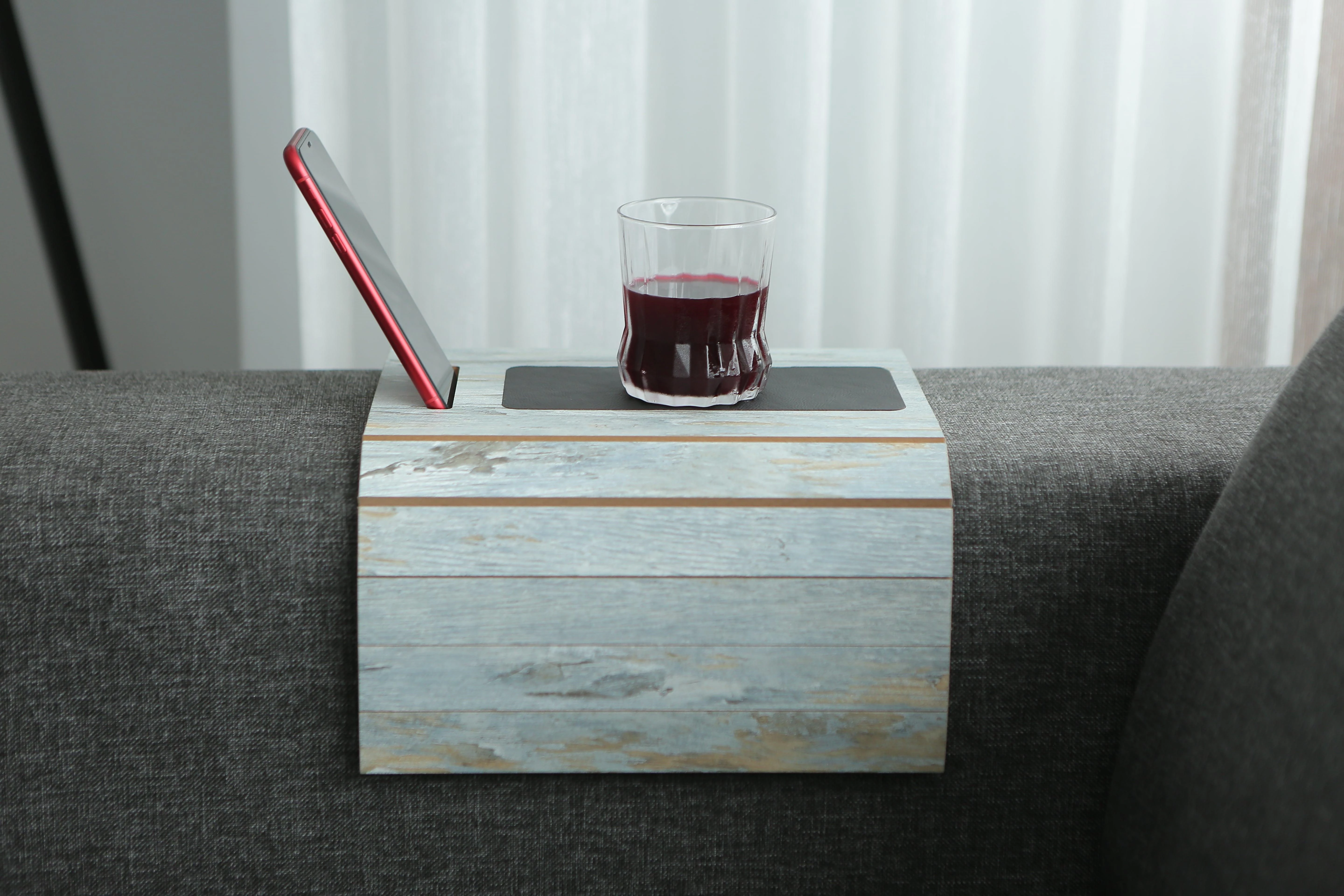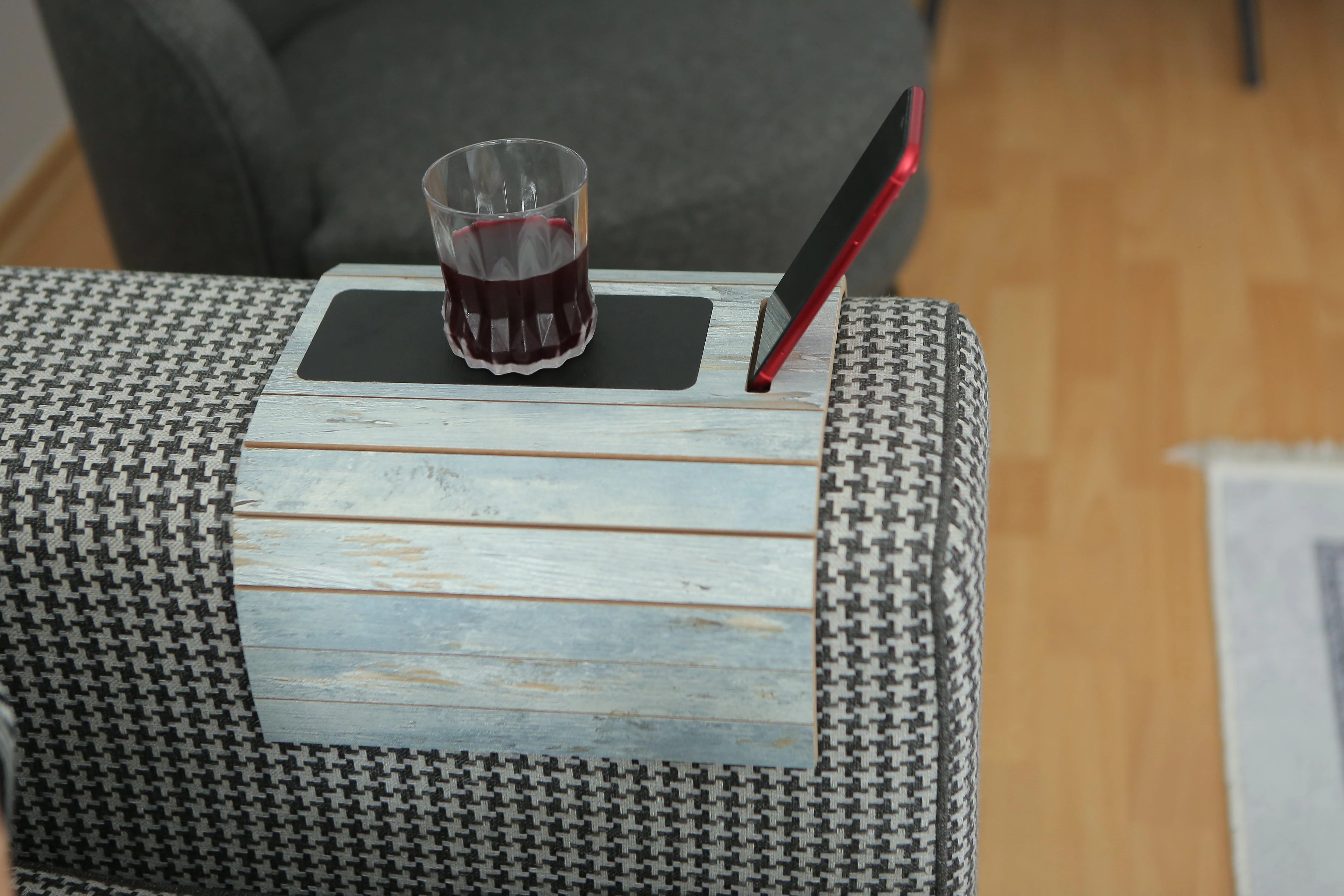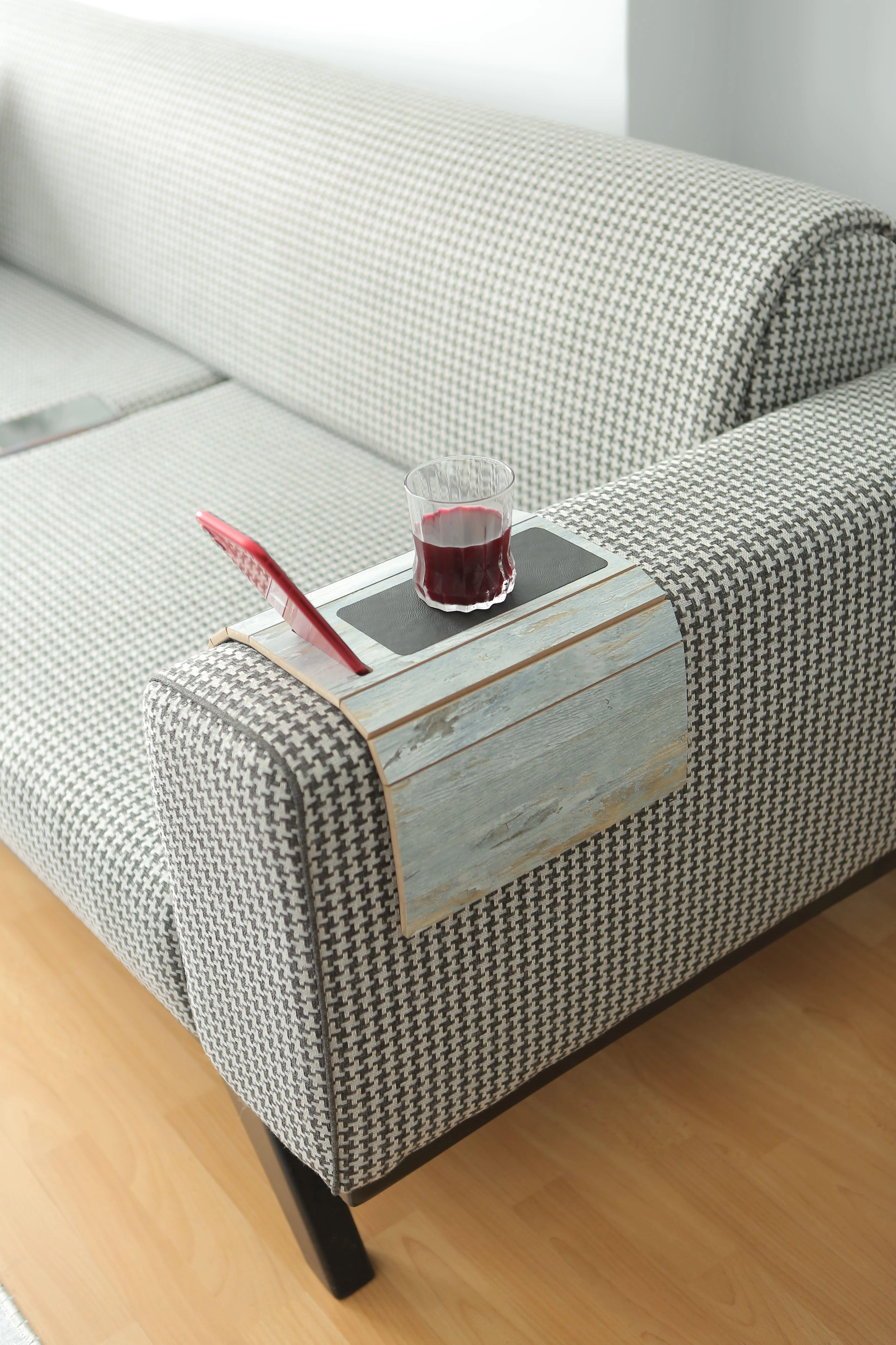 Deri Tabanlı Telefon Tutacaklı Koltuk Sehpası Kolçak Sehpası