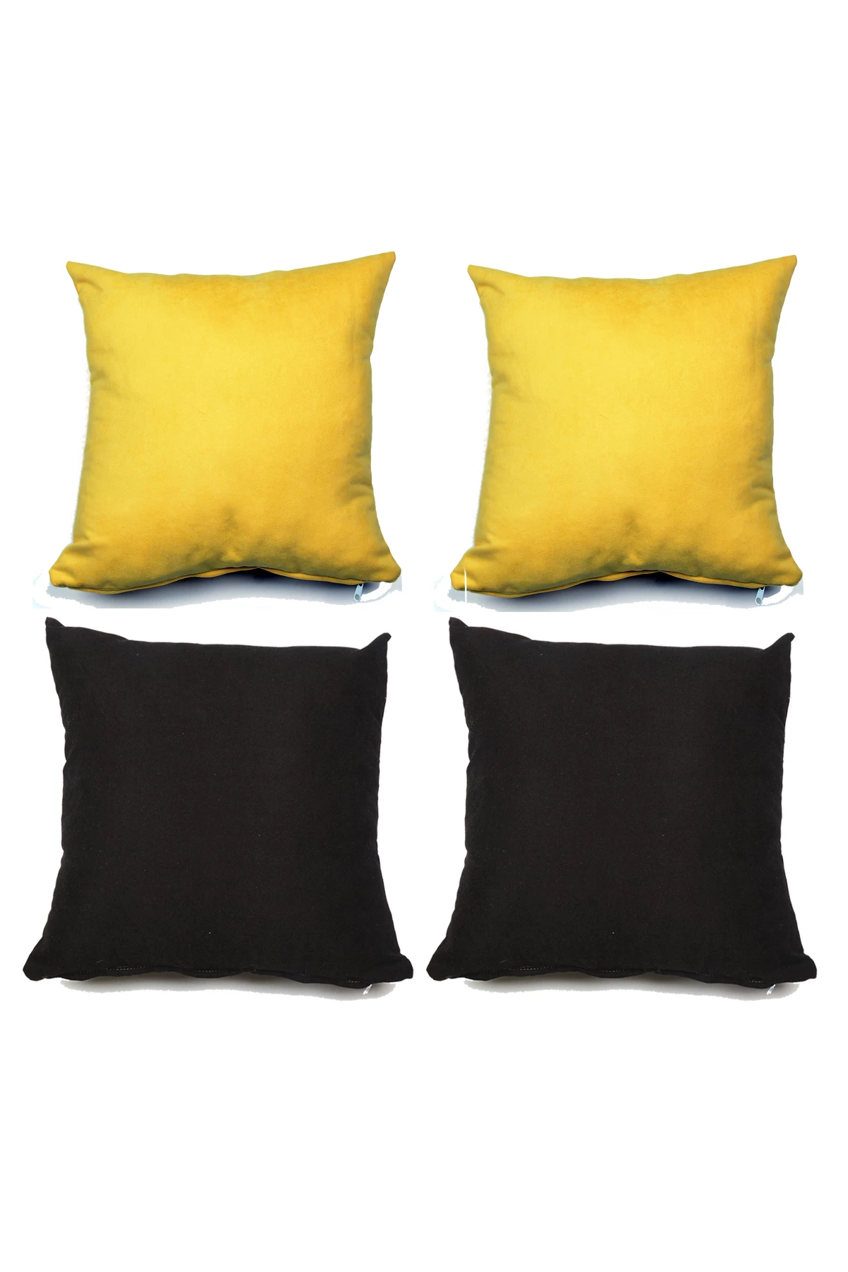 4 adet Süet Kırlent Minder Kılıfı 40X40cm Hardal Sarısı Siyah