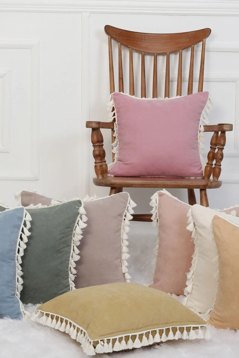 Needion - Püsküllü Kırlent Kılıfı Pudra