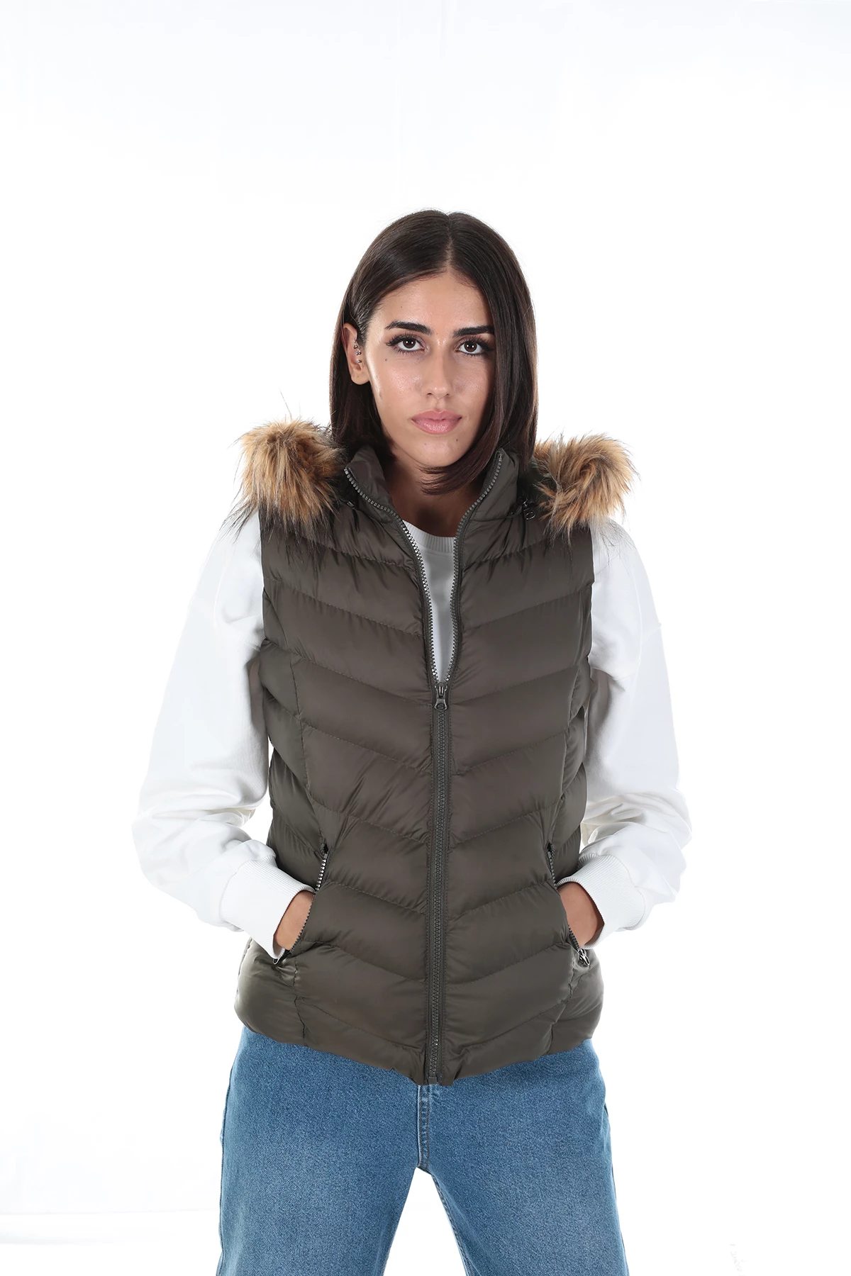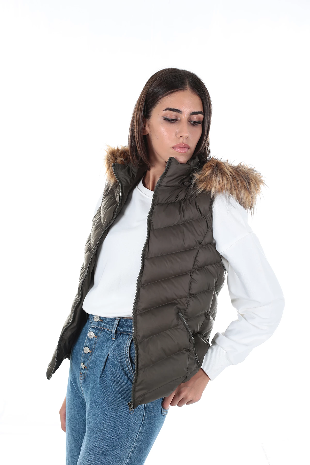 Needion - Brendon Kadın Kapüşonlu Yelek 264 Haki/Khaki 20W53000264Y Haki 34