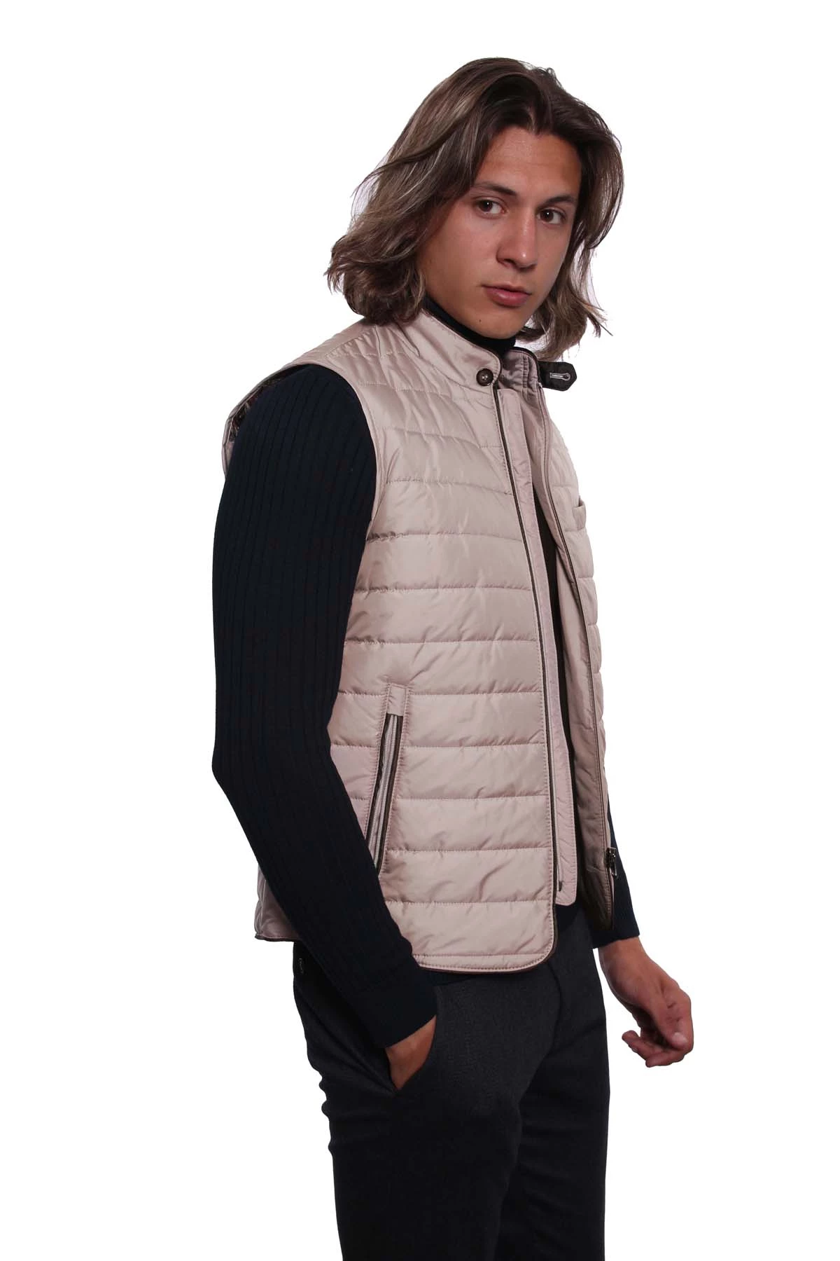 DETAY: Düz renk , Fermuarlı İç ve Dış Cepler, Dik Yaka Erkek Yelek