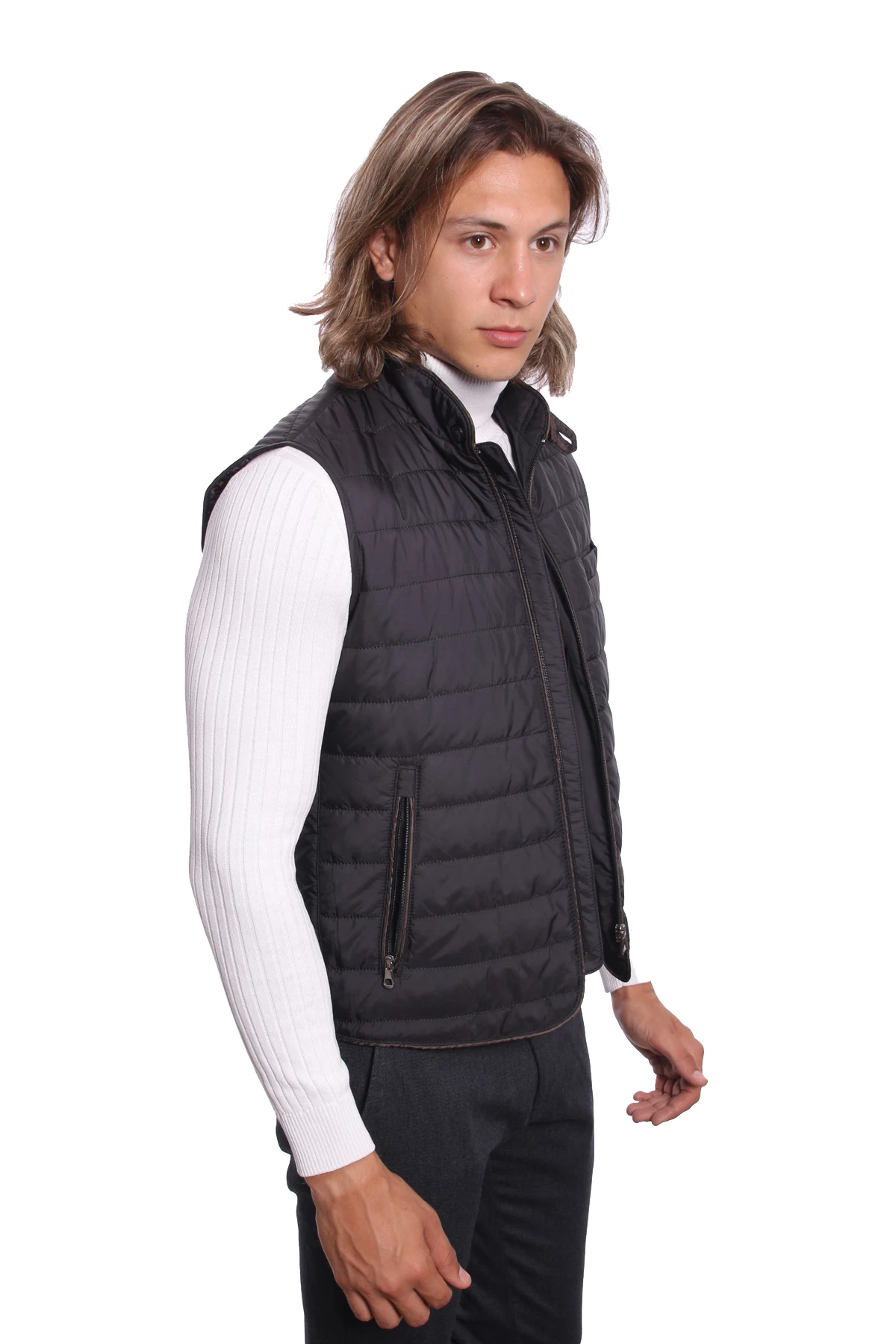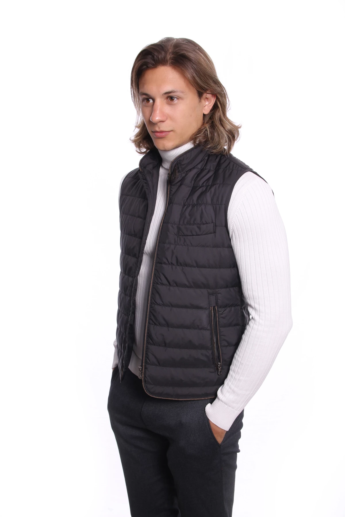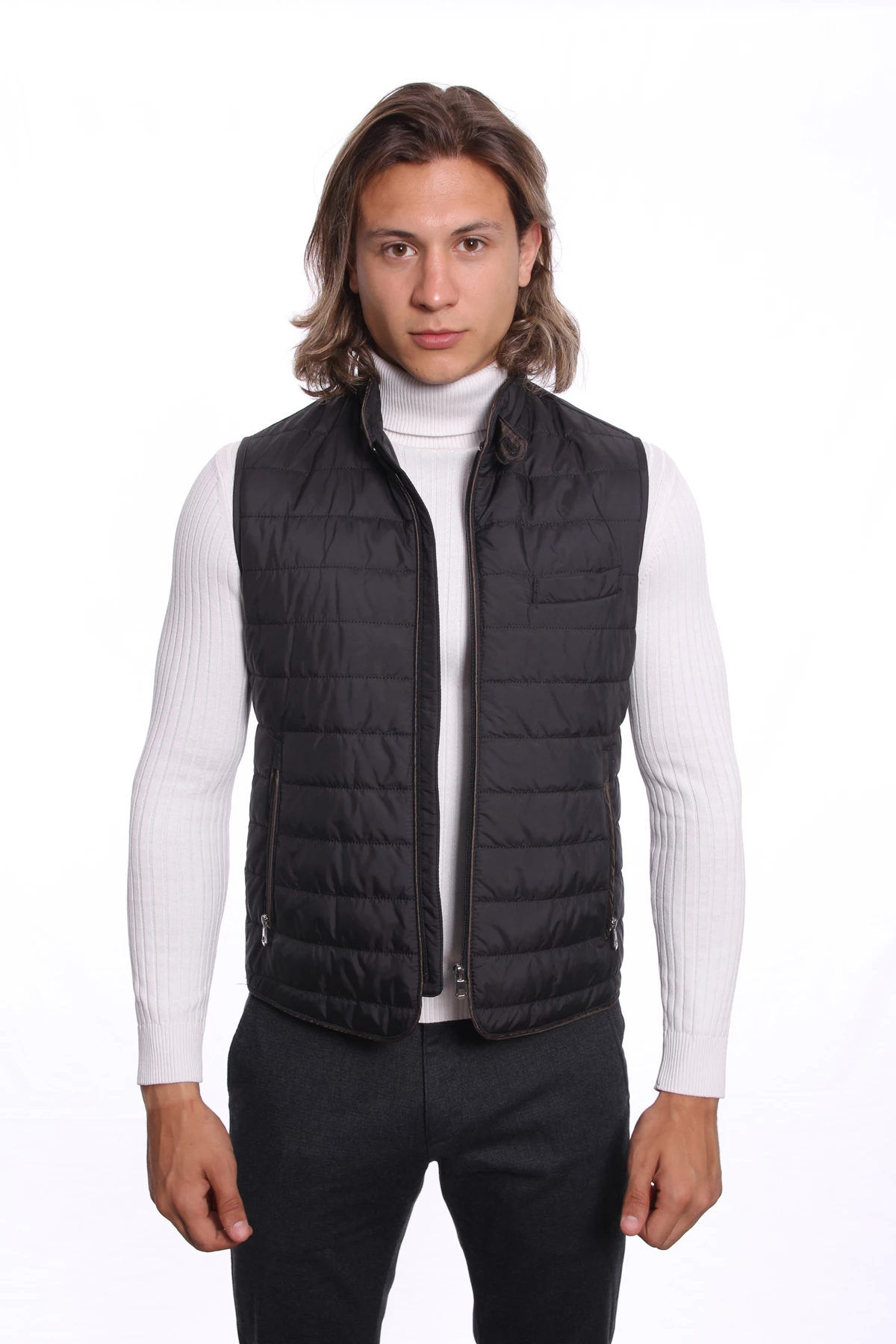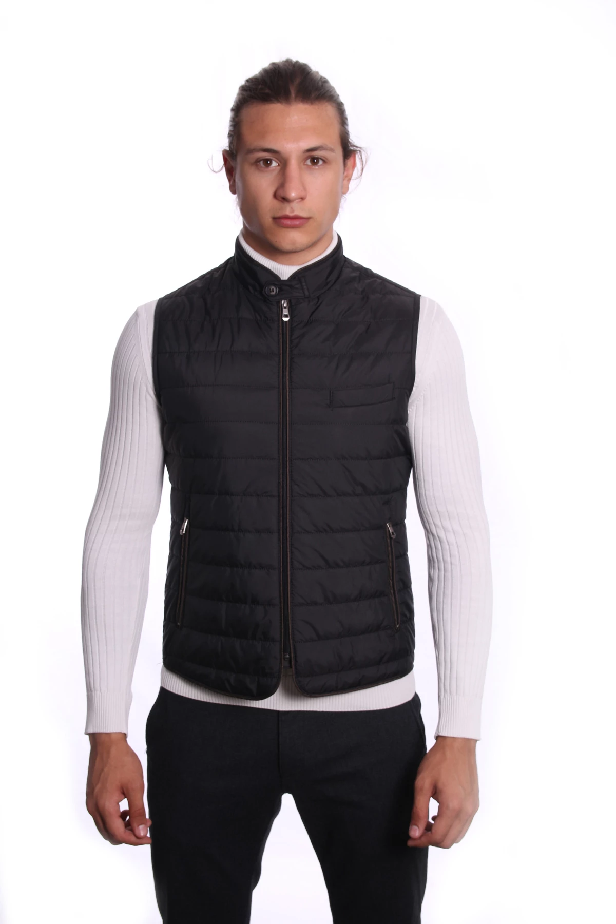 DETAY: Düz renk , Fermuarlı İç ve Dış Cepler, Dik Yaka Erkek Yelek