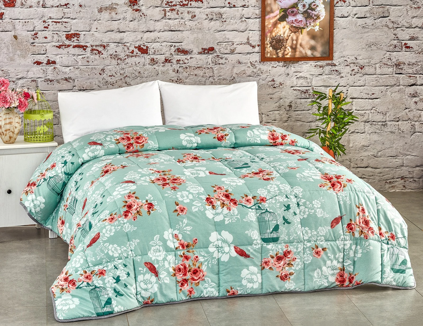 Needion - Komfort Home Çift Kişilik PolyCotton Yorgan + 2 Yastık / V1 Renkli