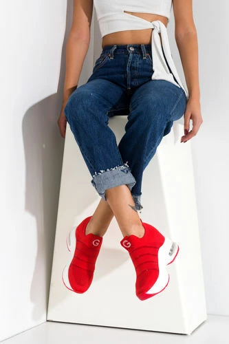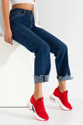 Kadın Kalın Taban Triko Spor Ayakkabı KIRMIZI GUJ221302 Kırmızı 37